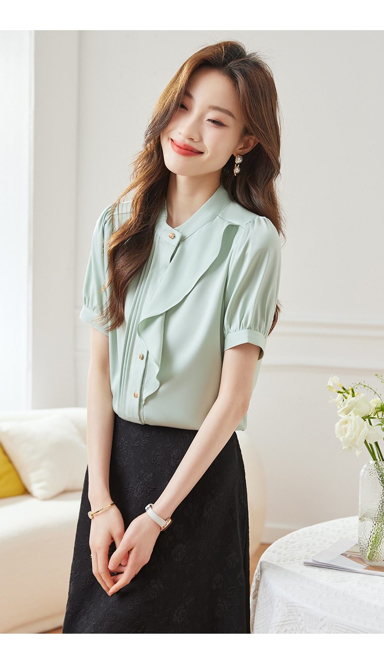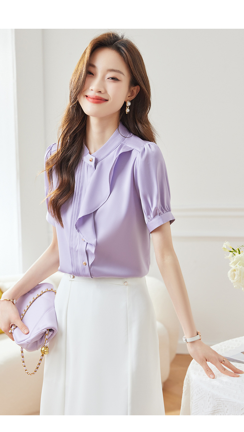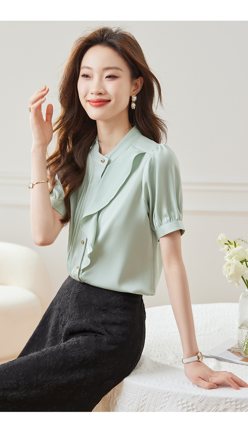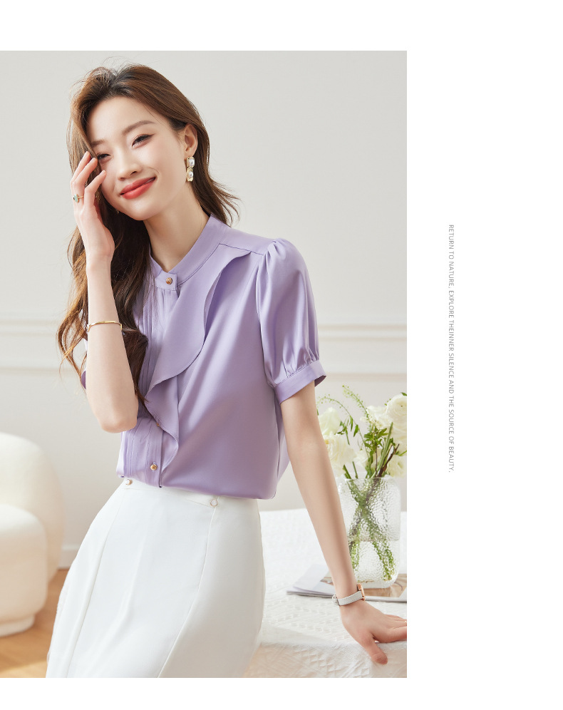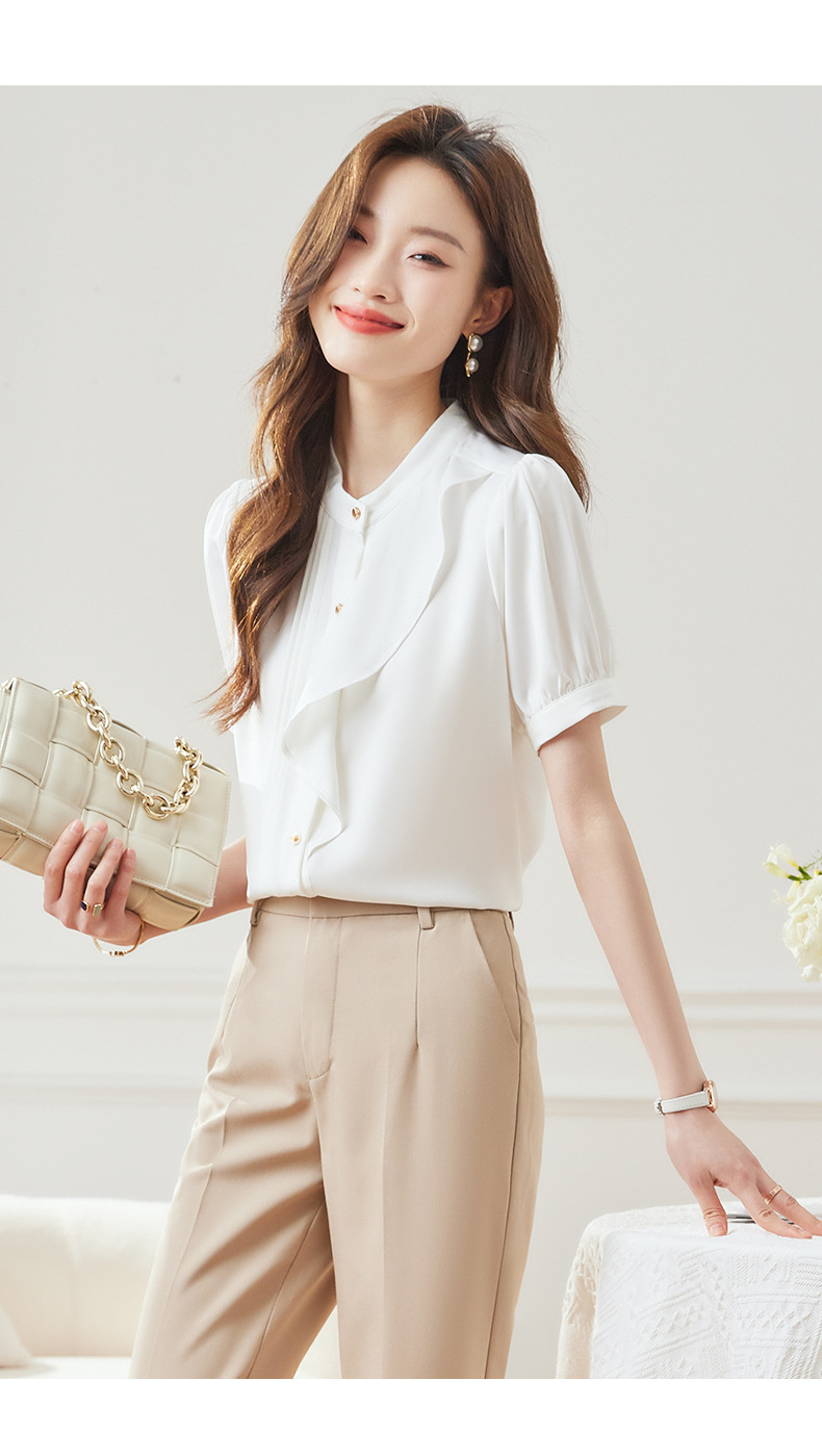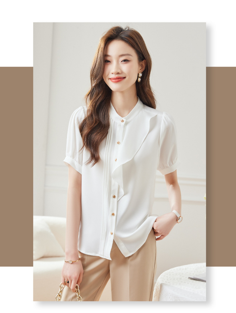 여름 얇은 드레이핑 반팔 셔츠 여자의 일본 스타일 작은 느슨한 모든 일치 디자인 셔츠 탑 재고