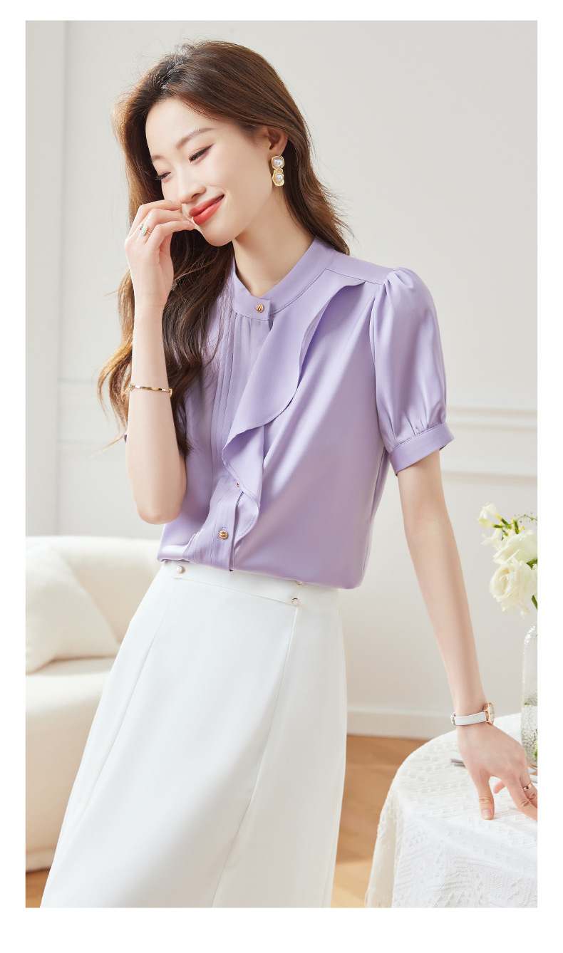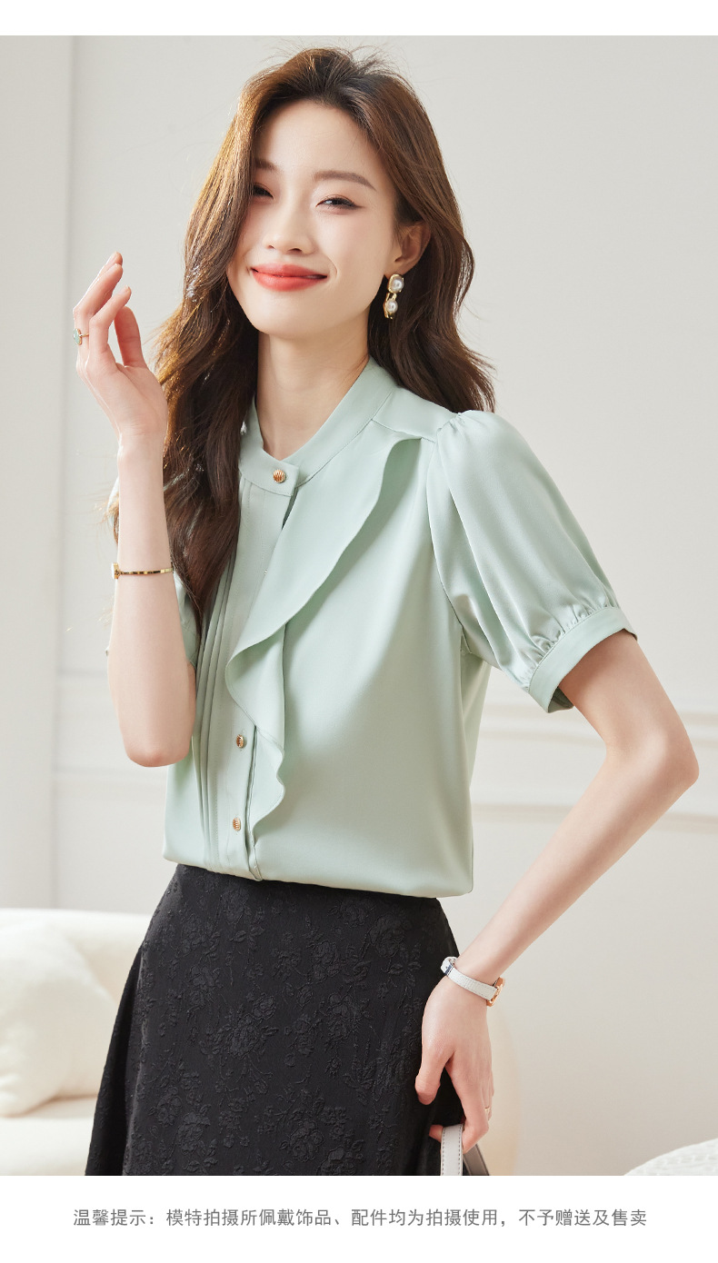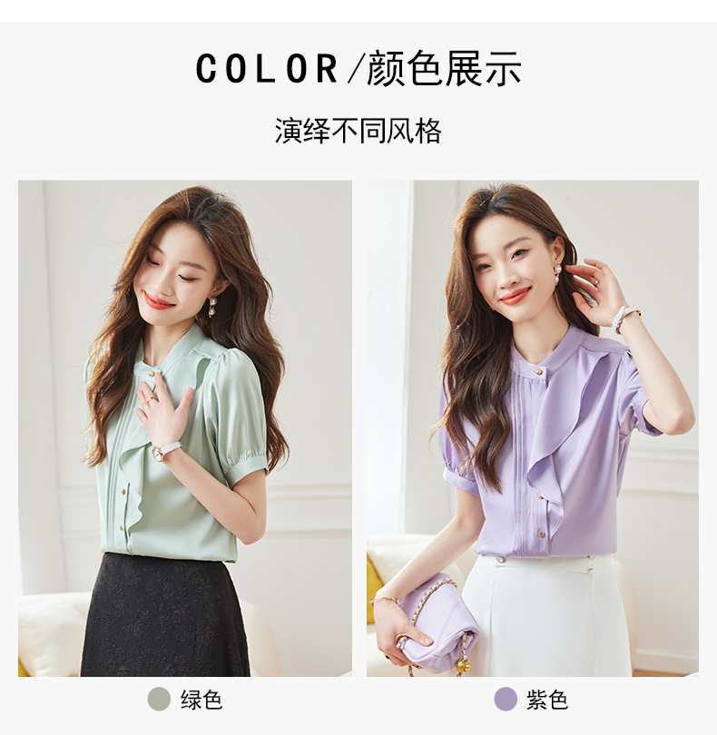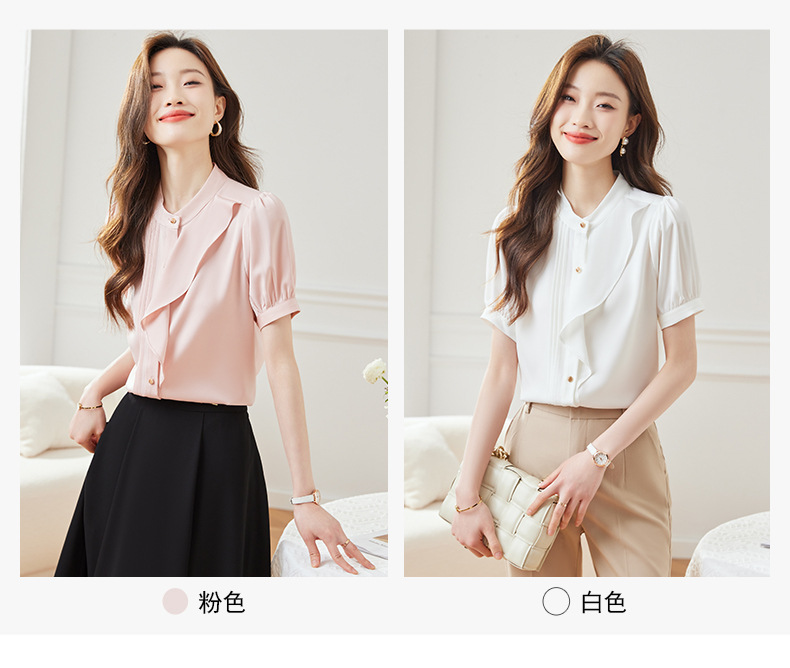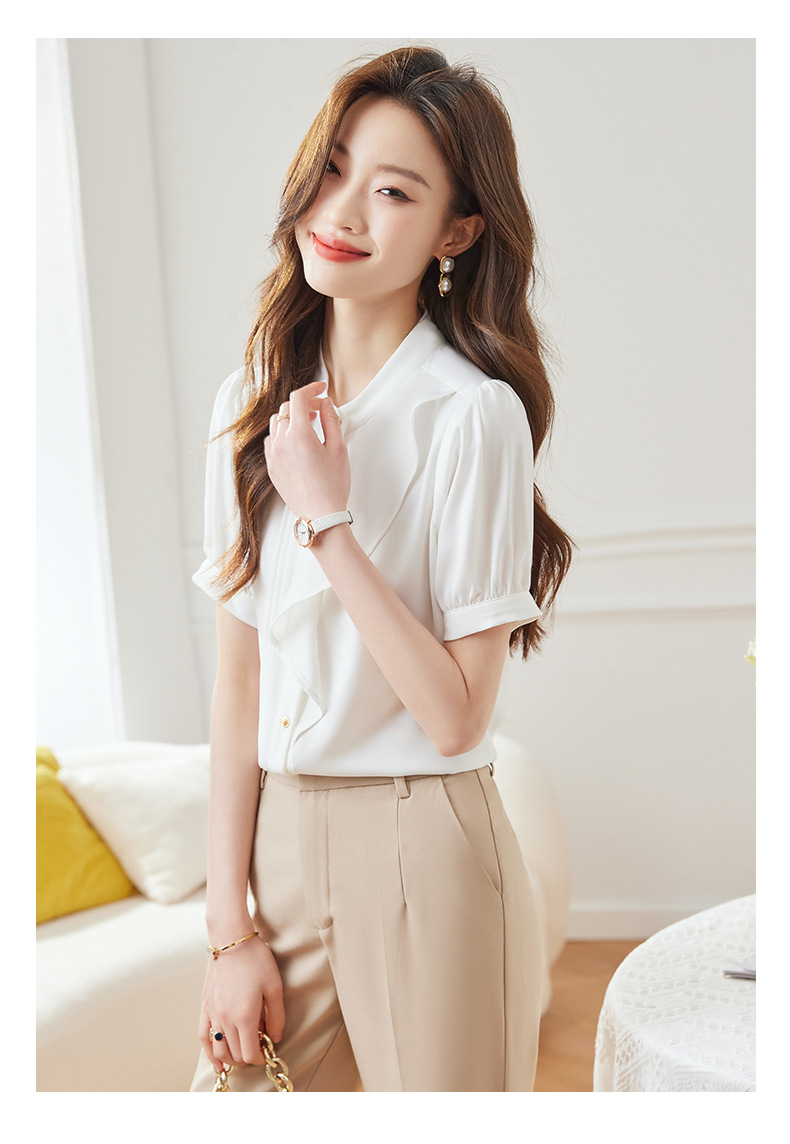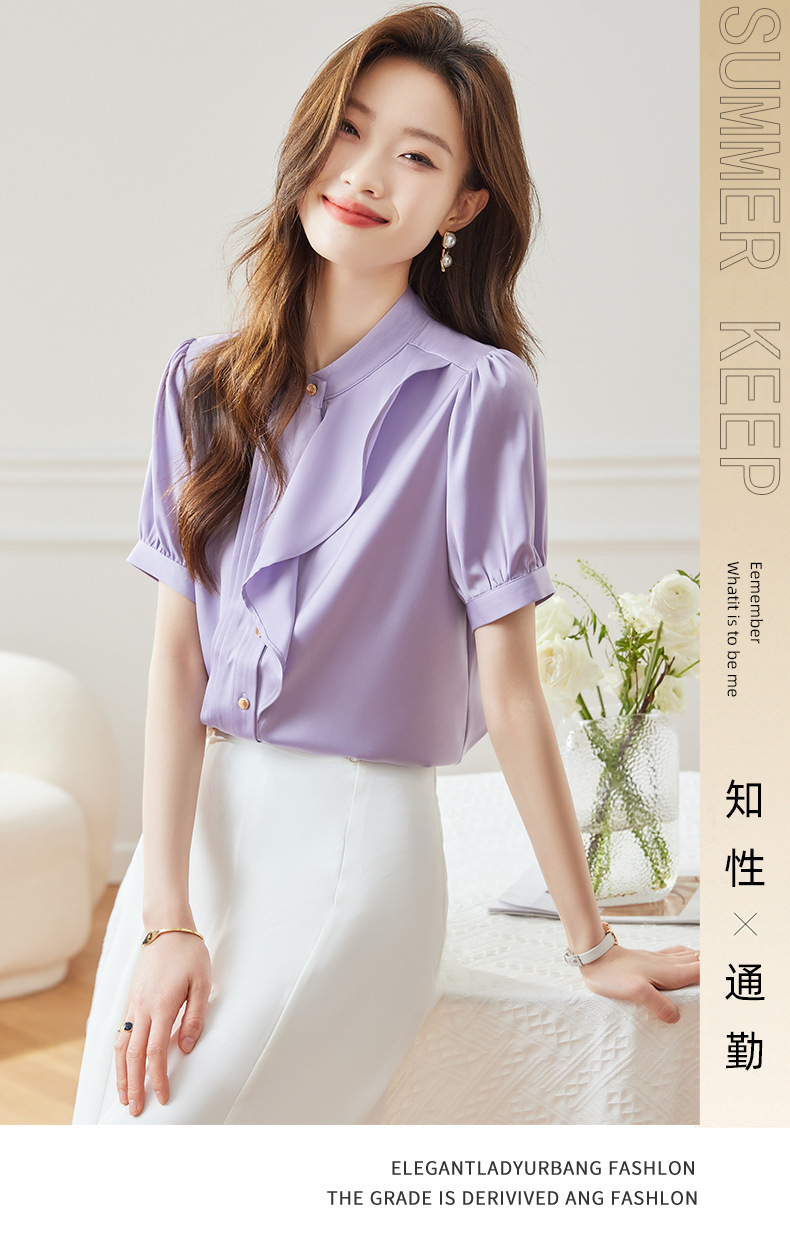 여름 얇은 드레이핑 반팔 셔츠 여자의 일본 스타일 작은 느슨한 모든 일치 디자인 셔츠 탑 재고