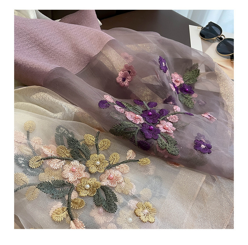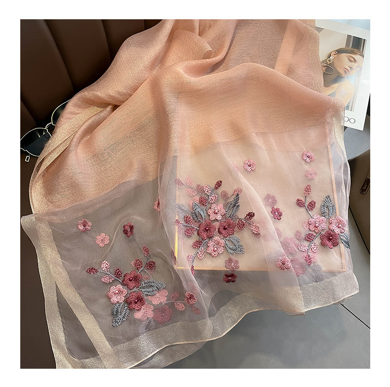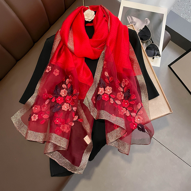 중국 스타일 꽃 실크 울 스카프 여성의 수제 자수 실크 스카프 따뜻한 에어컨 숄 긴 스카프 어머니