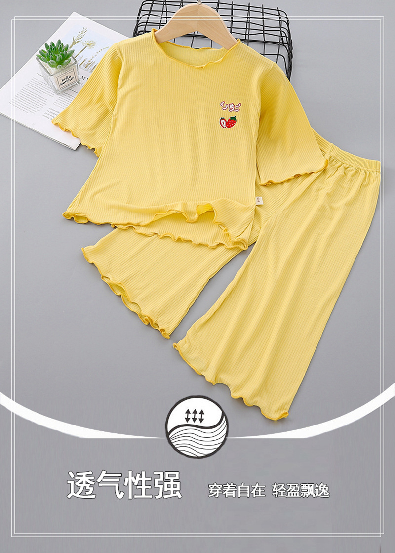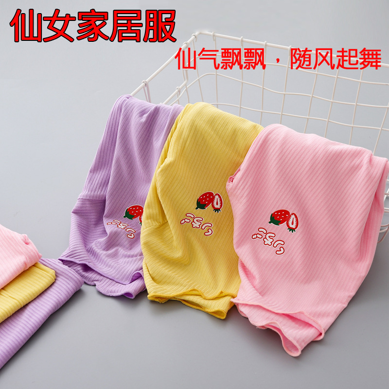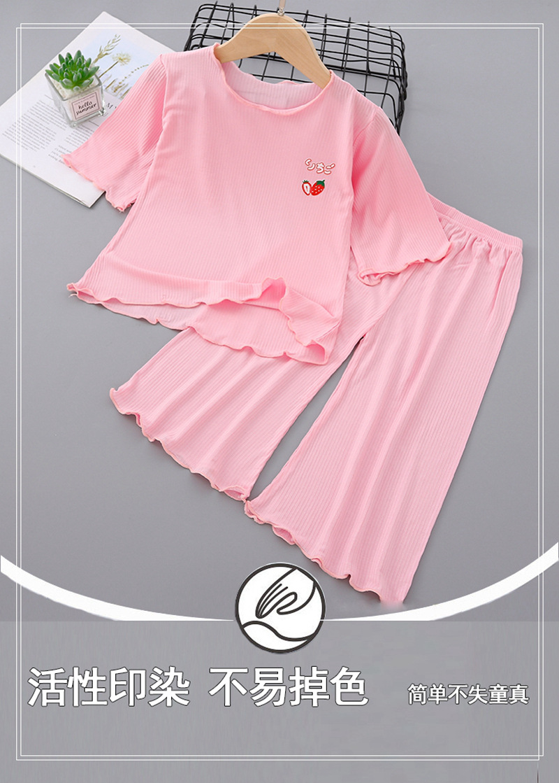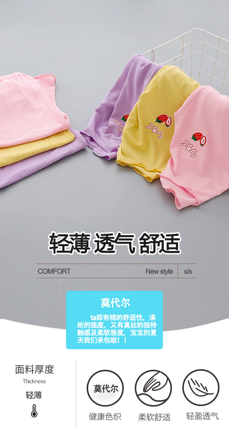 어린이 모달 가정 옷 여름 세트 소녀의 얼음 실크 얇은 에어컨 옷 어린 소녀의 느슨한 아기의 잠옷