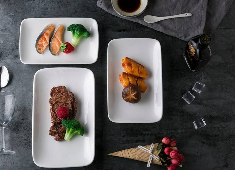 호텔 세라믹 플레이트 딤섬 플레이트 접시 쌀 롤 케이크 플레이트 화이트 도자기 창조적 인 서양 식기 긴 사각형 스시 플레이트 빵 플랫 플레이트