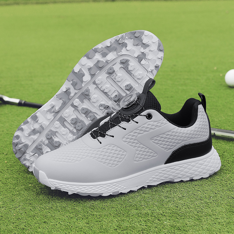 남성과 여성을위한 골프 신발 커플 편안한 방수 자동 손잡이 개폐식 신발 끈 미끄럼 방지 고정 손톱 야외 운동화스토어 가기