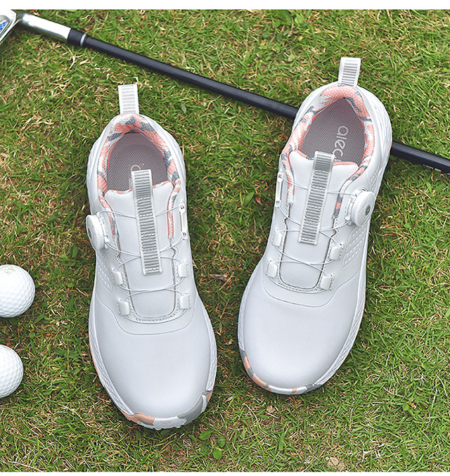 남성과 여성을위한 골프 신발 커플 편안한 방수 자동 손잡이 개폐식 신발 끈 미끄럼 방지 고정 손톱 야외 운동화