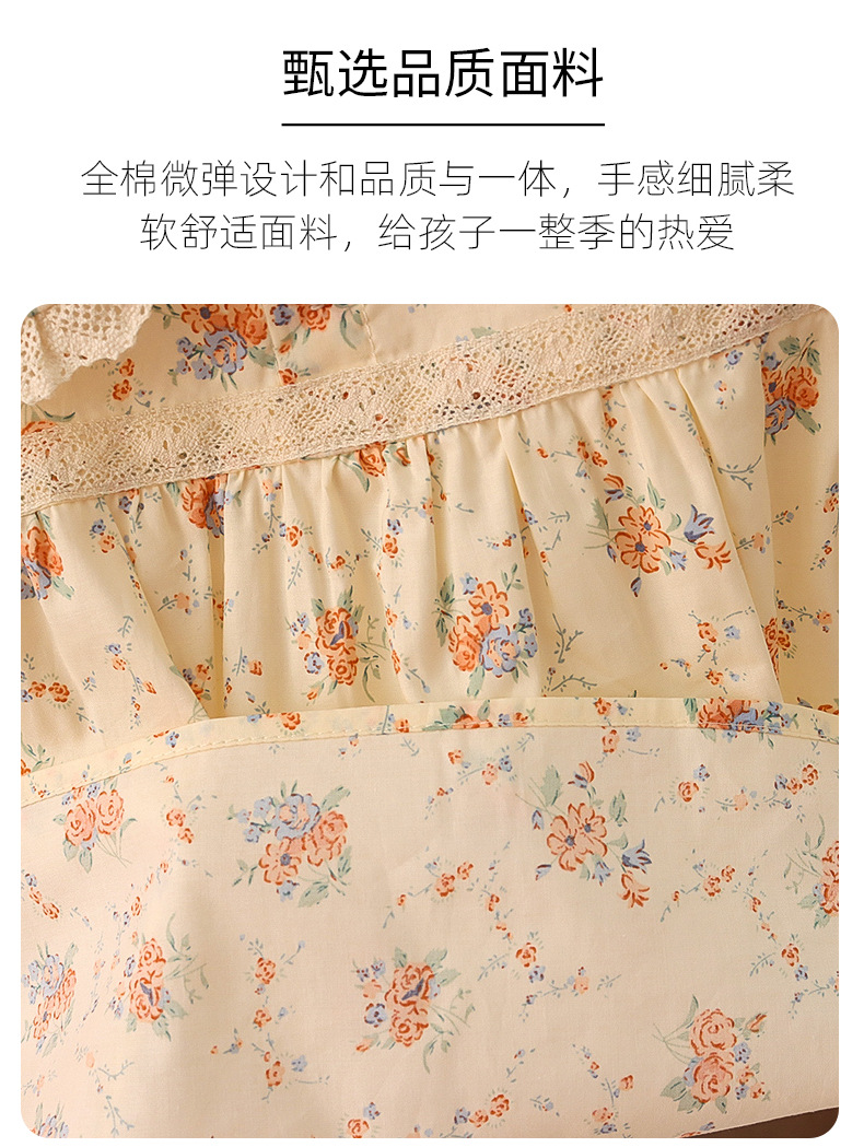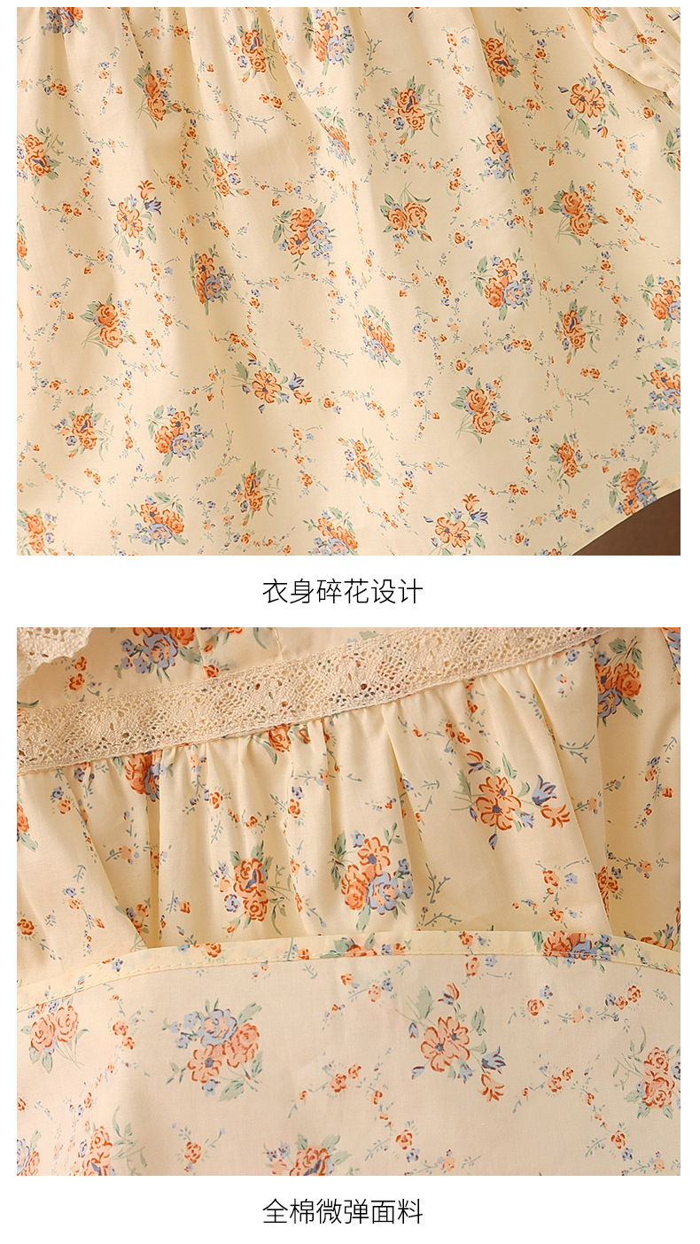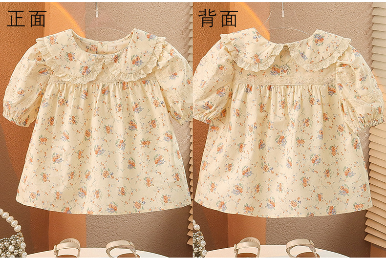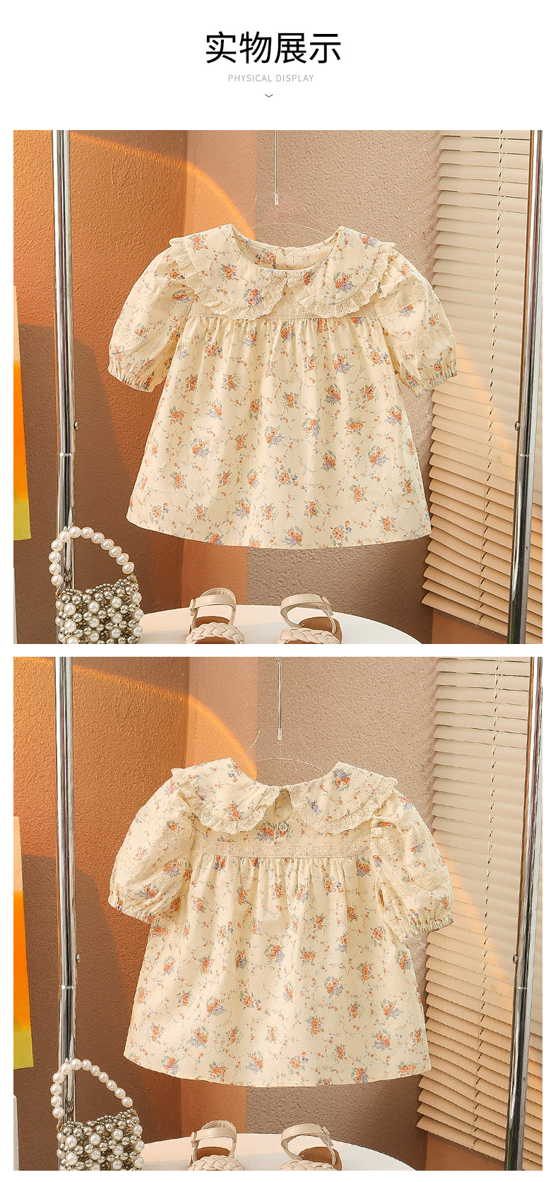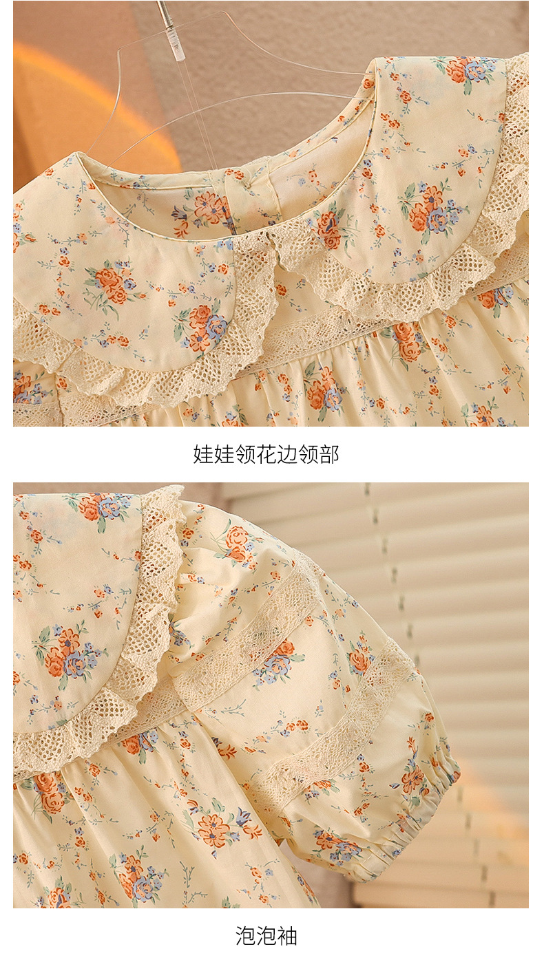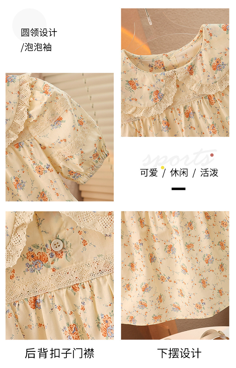 여아 여름 반팔 탑 코튼 셔츠 버튼 코튼 플로럴 스위트 레이스 한국식 유치원 인형 셔츠