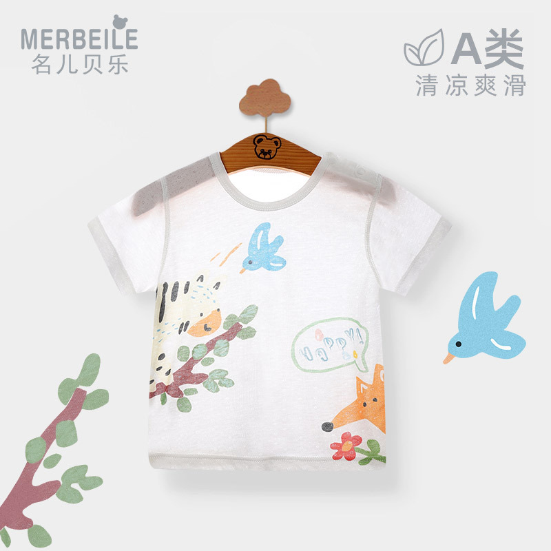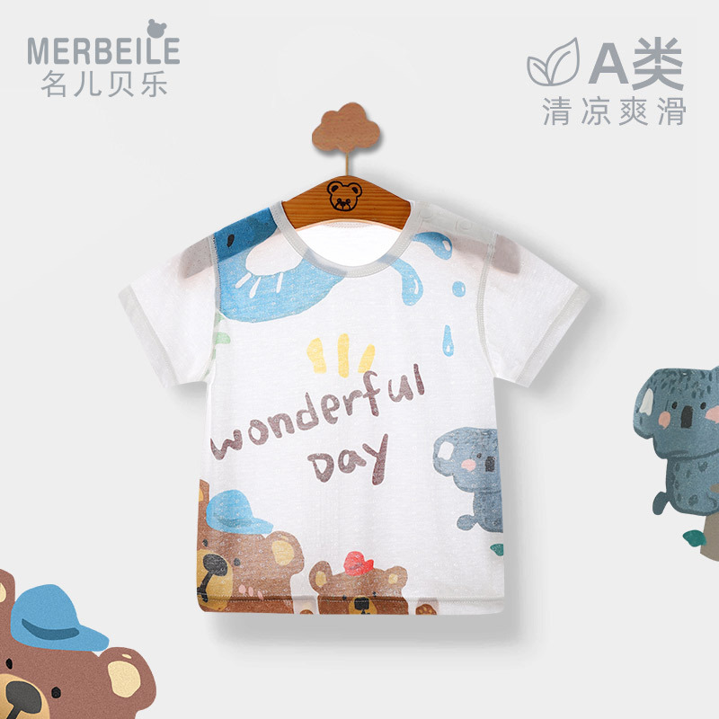 베이비 탑 얇은 여름 신생아 반팔 티셔츠 싱글 피스 에어컨 의류 아기 가디건 대나무 섬유 잠옷스토어 가기