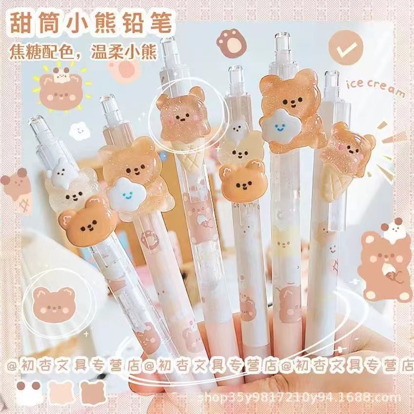 Youmei A2732 콘 베어 자동 연필 만화 귀여운 아크릴 패치 학생 샤프 펜슬 0.5스토어 가기
