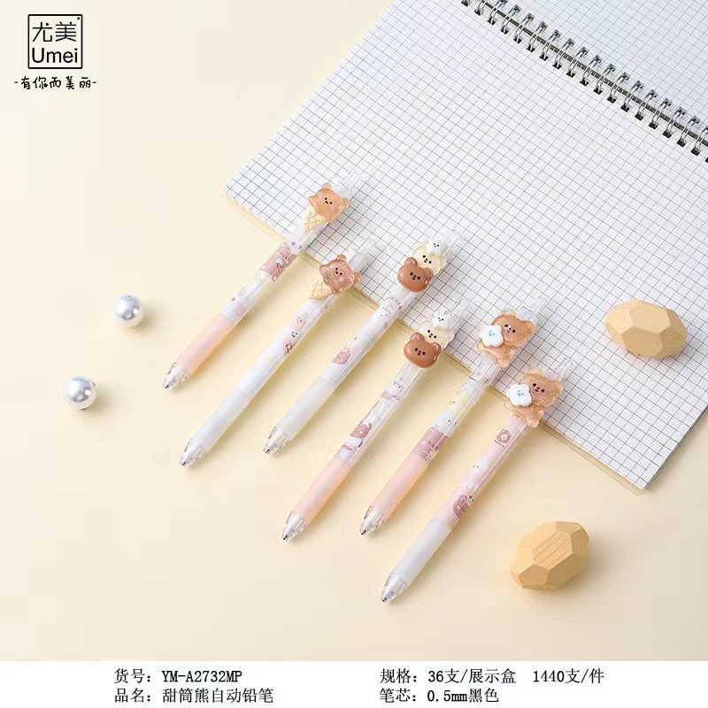 Youmei A2732 콘 베어 자동 연필 만화 귀여운 아크릴 패치 학생 샤프 펜슬 0.5