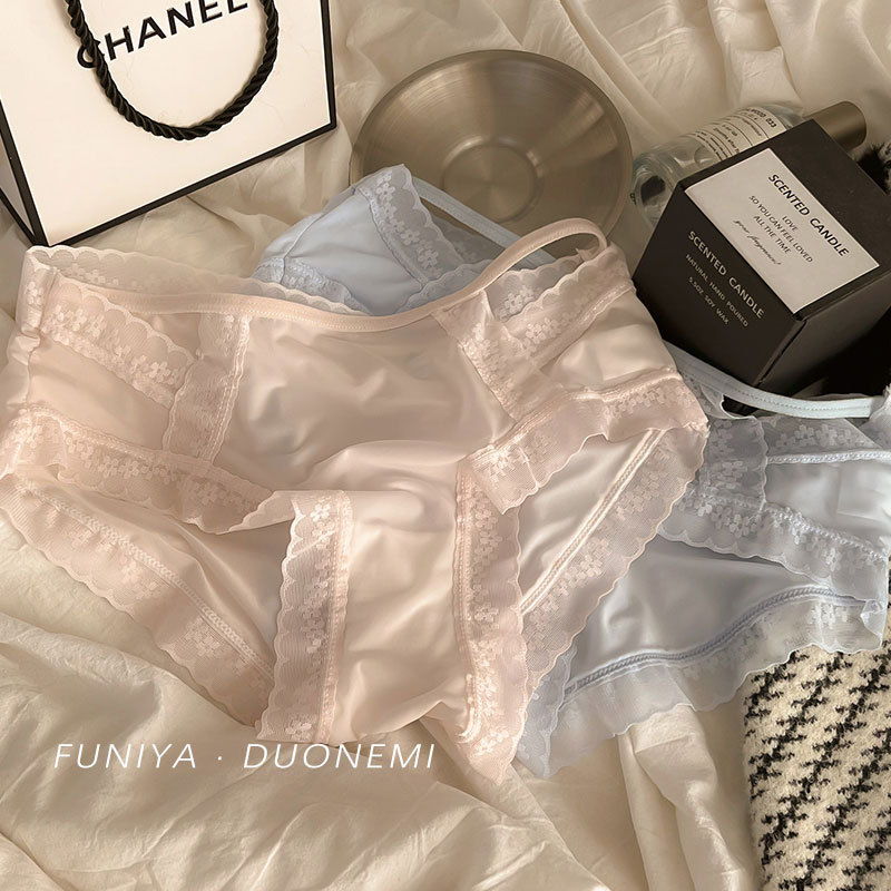 일본식 레이스 속옷 여성의 섹시한 순수한 욕망 소녀의 중간 허리 원활한 순면 가랑이 얇은 통기성 얼음 실크 여행