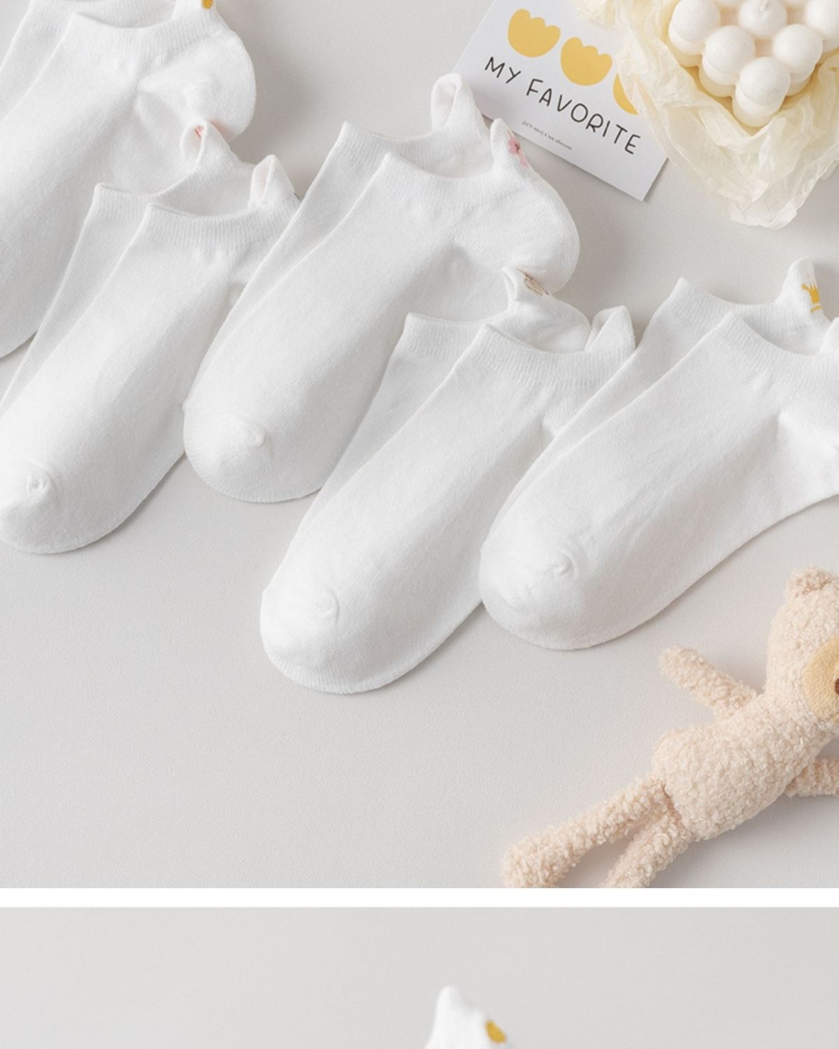 양말 여성용 짧은 양말 여름 로우 컷 얇은 일본식 귀여운 얕은 보트 양말 학생면 양말 트렌디 자수 화이트