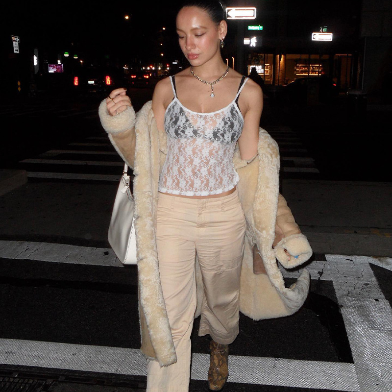 유럽과 미국 인 스타일 레이스 원근감 멜빵 2023 여름 새로운 여성의 슬림 패션 작은 조끼 도매스토어 가기
