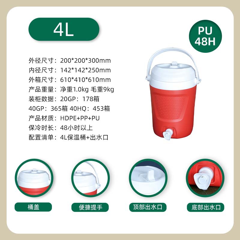 • [폭발성 제품의 뜨거운 판매] 4L 레드 스포츠 아이스 버킷 [하이 PU] 48 시간 동안 냉온 [더블 아울렛]]
