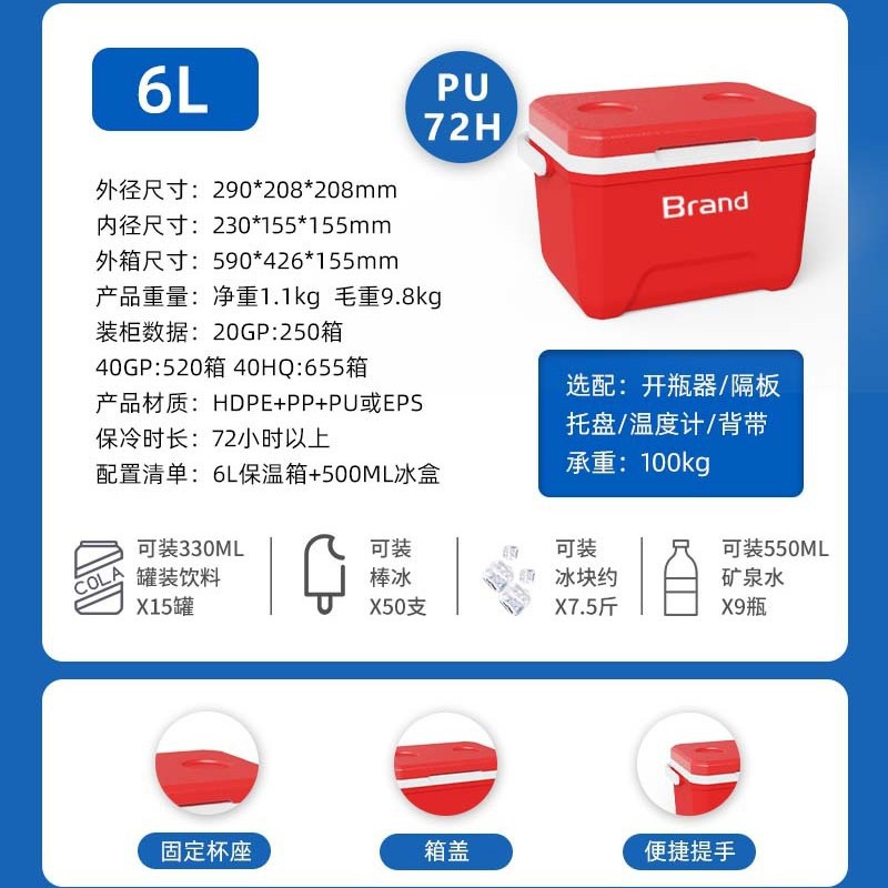 • [폭발성 뜨거운] 5L 레드 핸들 인큐베이터 [전체 6 면 PU 높이] 차가운 72 시간 [500ML 아이스 박스 포함]