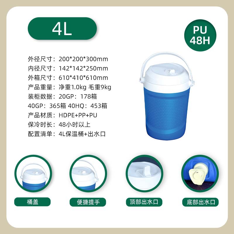 • [폭발성 제품의 뜨거운 판매] 4L 블루 스포츠 아이스 버킷 [높은 PU] 48 시간 동안 냉온 [단일 아울렛]]
