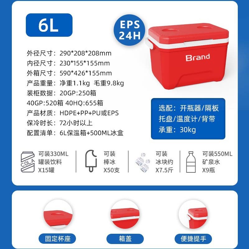 • [폭발물 뜨거운 판매] 5L 빨간 손잡이 인큐베이터 [표준 EPS] 24 시간 추위 [500ML 아이스 박스 포함]