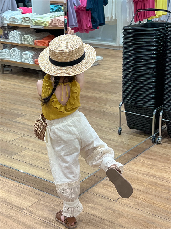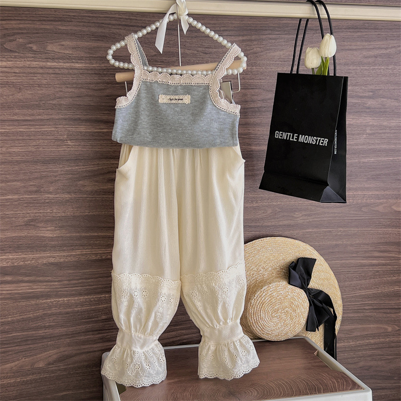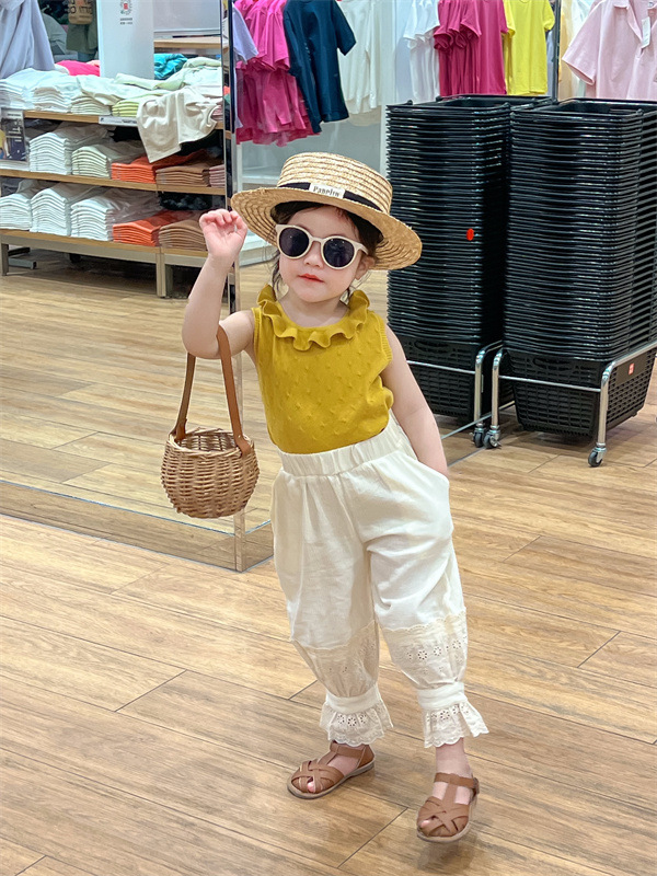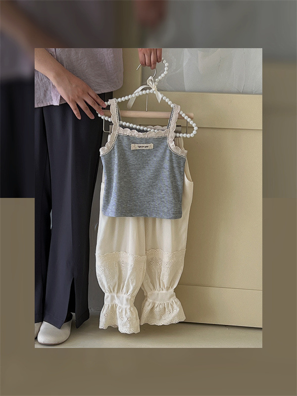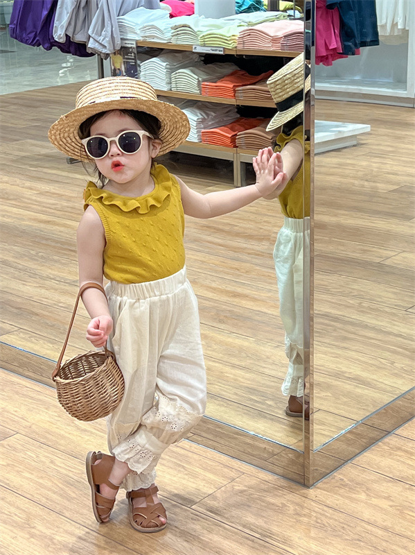 여아 모기 방지 바지 여름 새로운 어린이 레이스 스포츠 캐주얼 바지 트렌디 베이비 웨스턴 스타일 발목 길이 바지스토어 가기