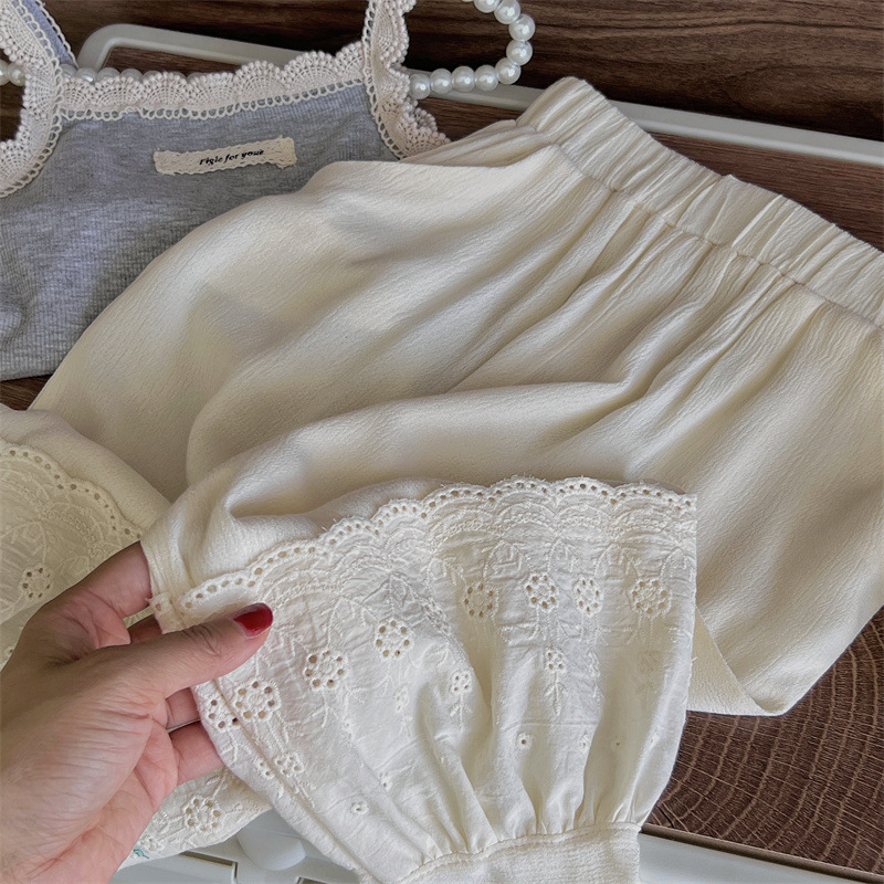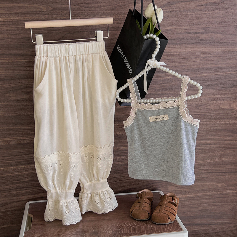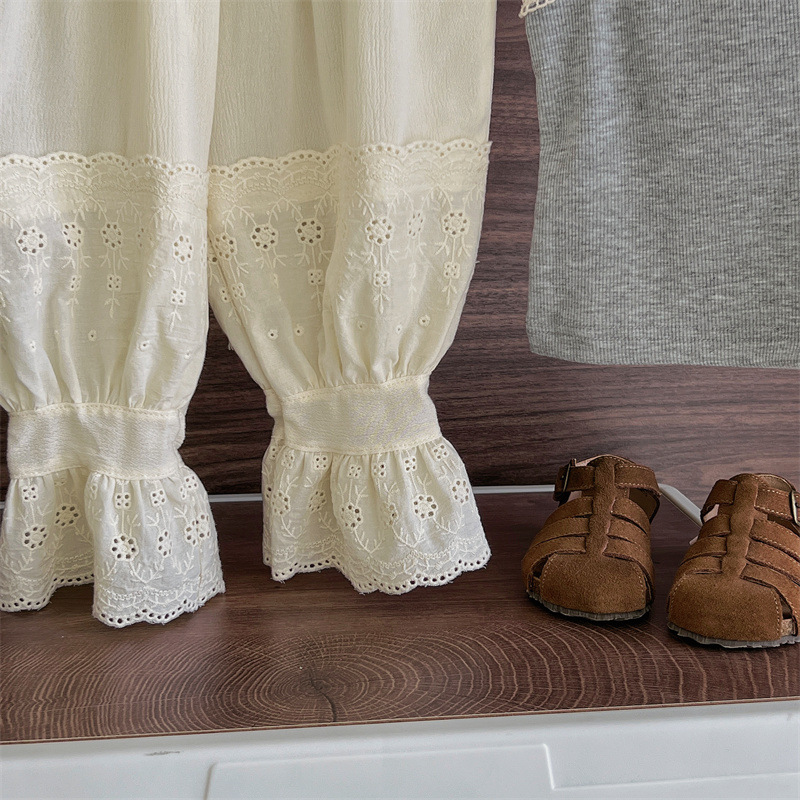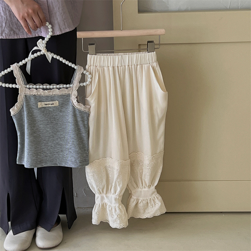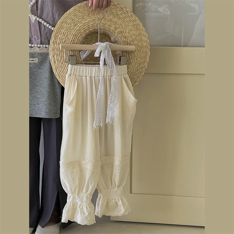 여아 모기 방지 바지 여름 새로운 어린이 레이스 스포츠 캐주얼 바지 트렌디 베이비 웨스턴 스타일 발목 길이 바지
