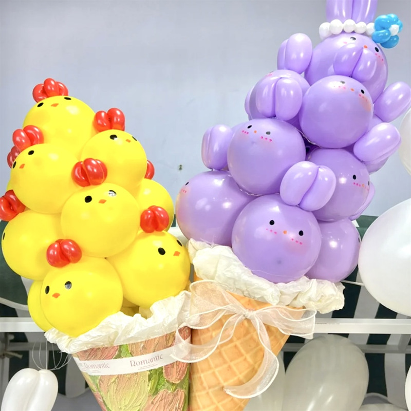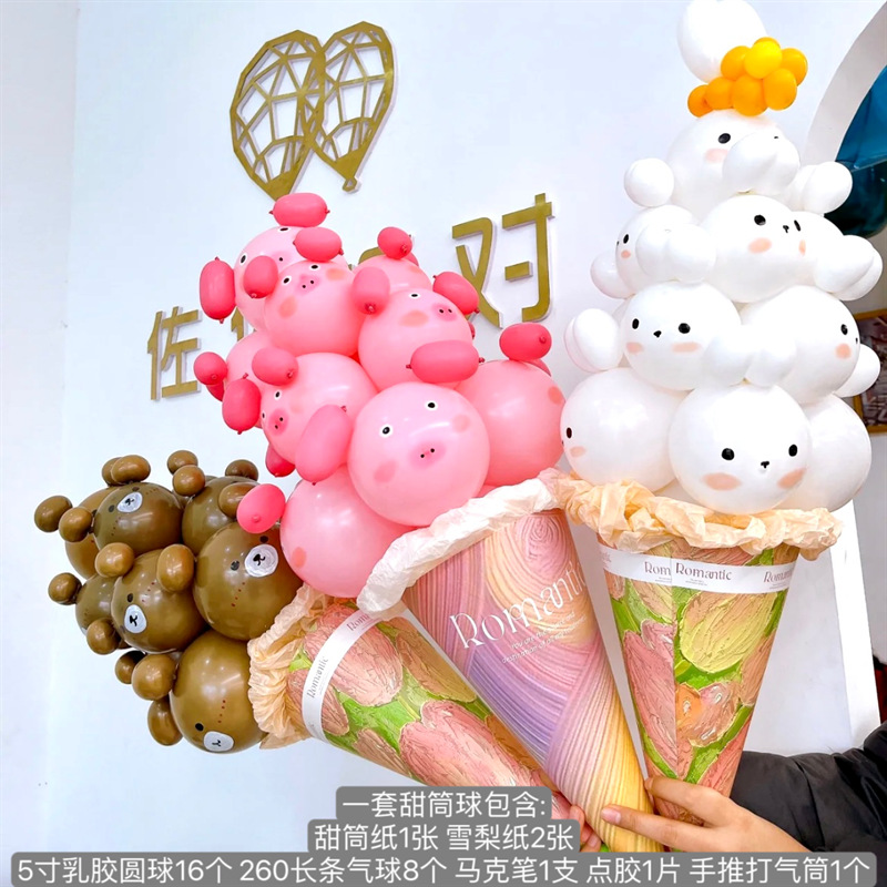 • 닭 토끼 곰 풍선 콘 1 세트 (펌프 포함)