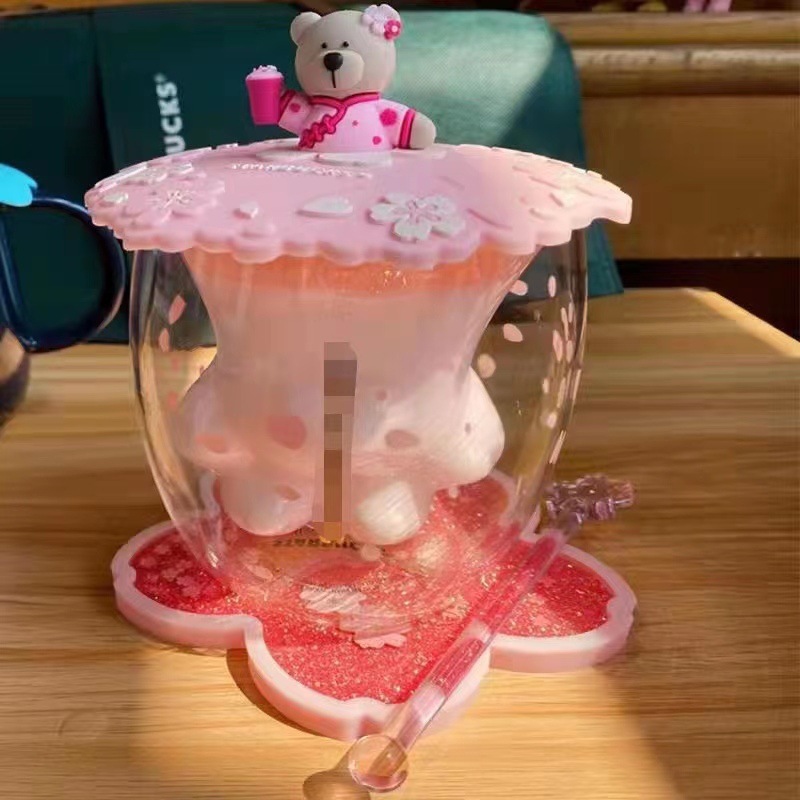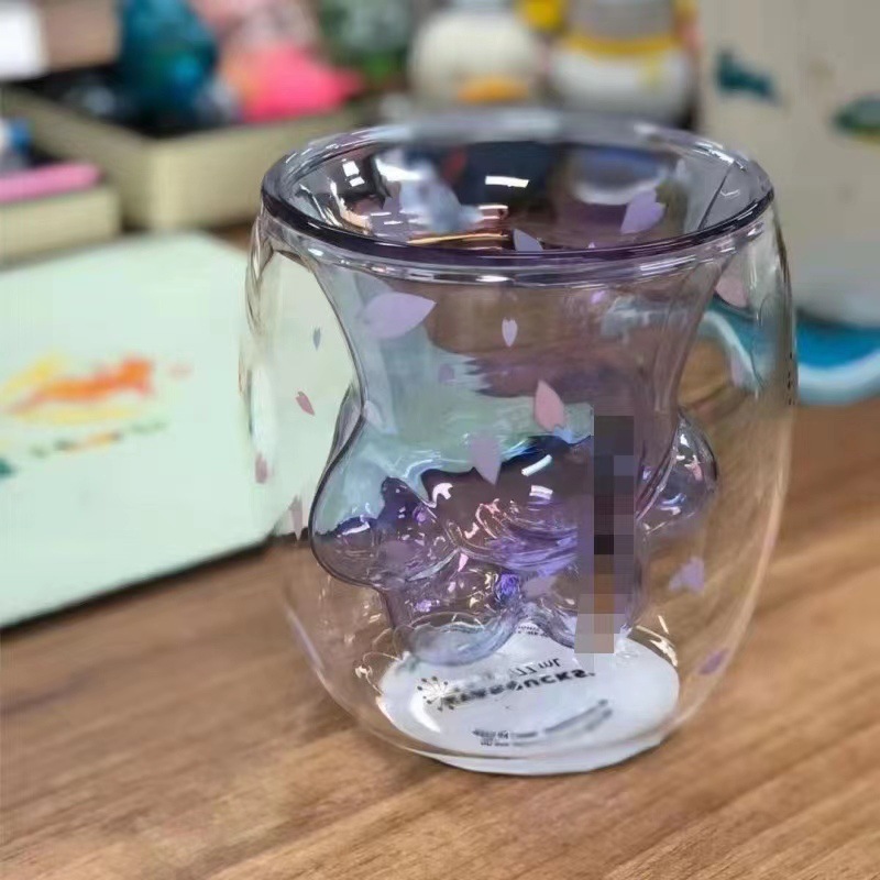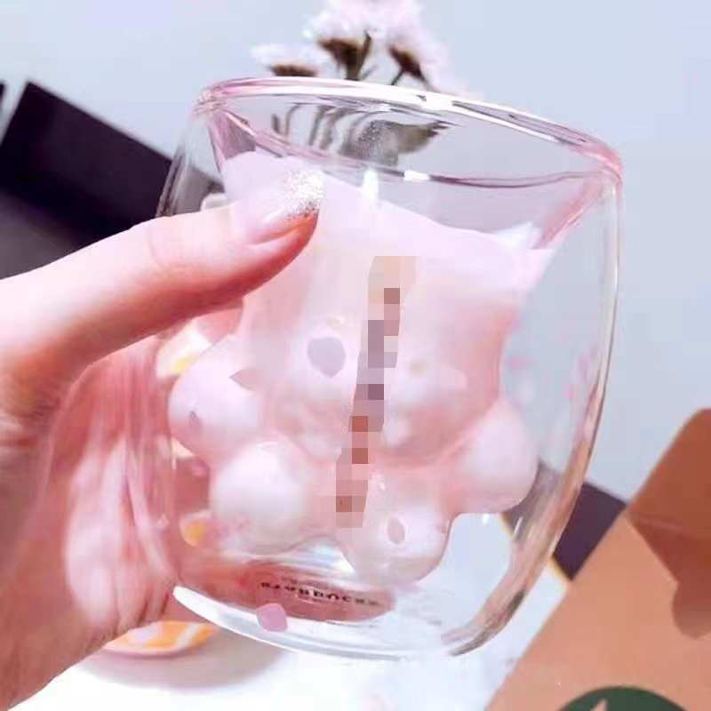 귀여운 만화 고양이 발톱 컵 커피 컵 음료 컵 더블 유리 핑크 고양이 발톱 폭발 방지 유리 생일 선물스토어 가기