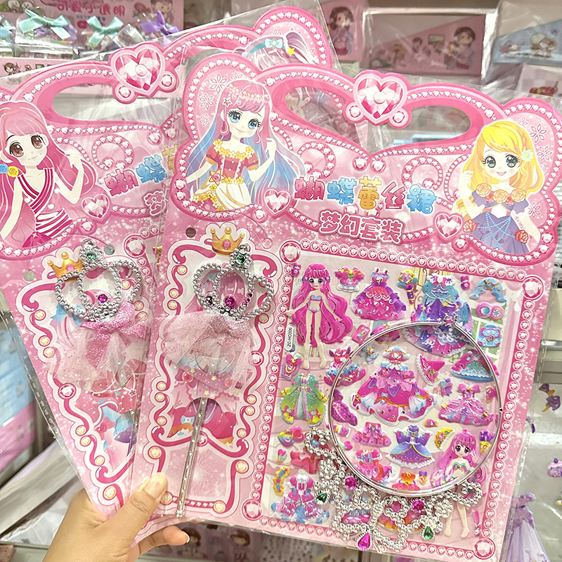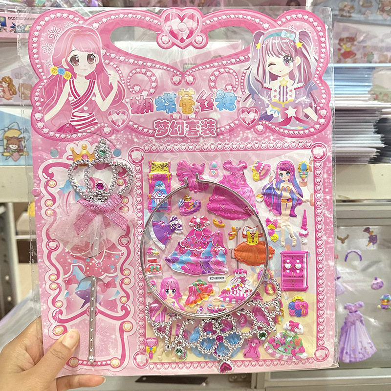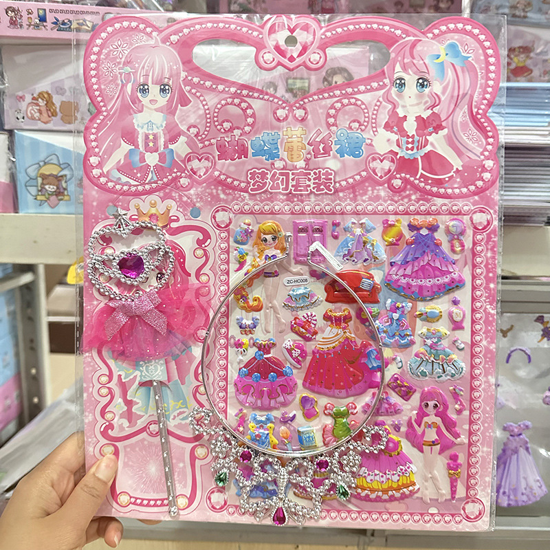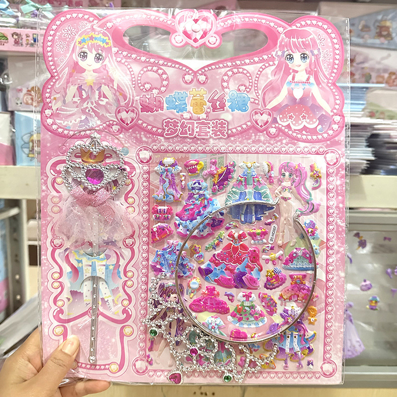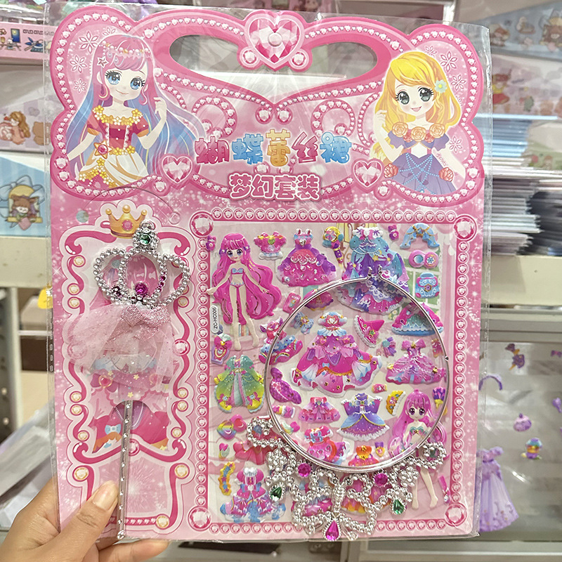 어린이 만화 3 차원 드레싱 보상 퍼즐 스티커 크라운 요정 마술 스틱 원피스 업 소녀 거품 스티커스토어 가기