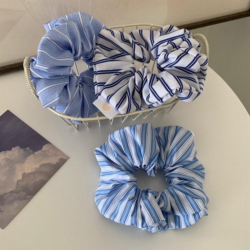 간단하고 신선한 스트라이프 헤어 링 한국 미니멀리스트 헤어 로프 대형 창자 모든 일치 소녀의 헤드 로프 폰 테일 헤어 액세서리스토어 가기