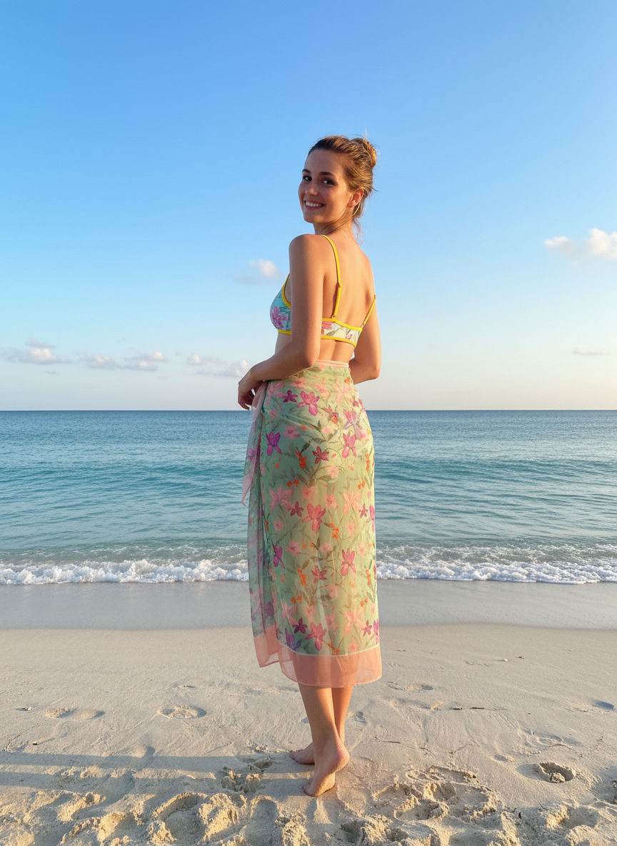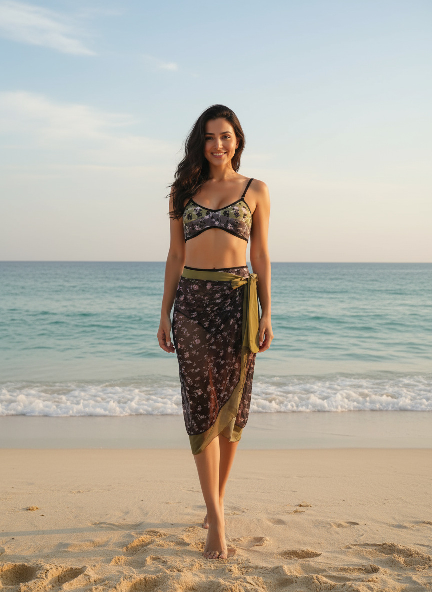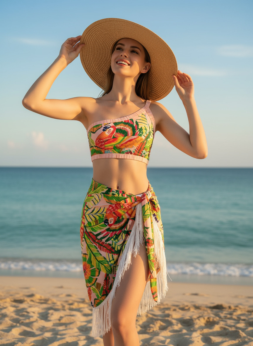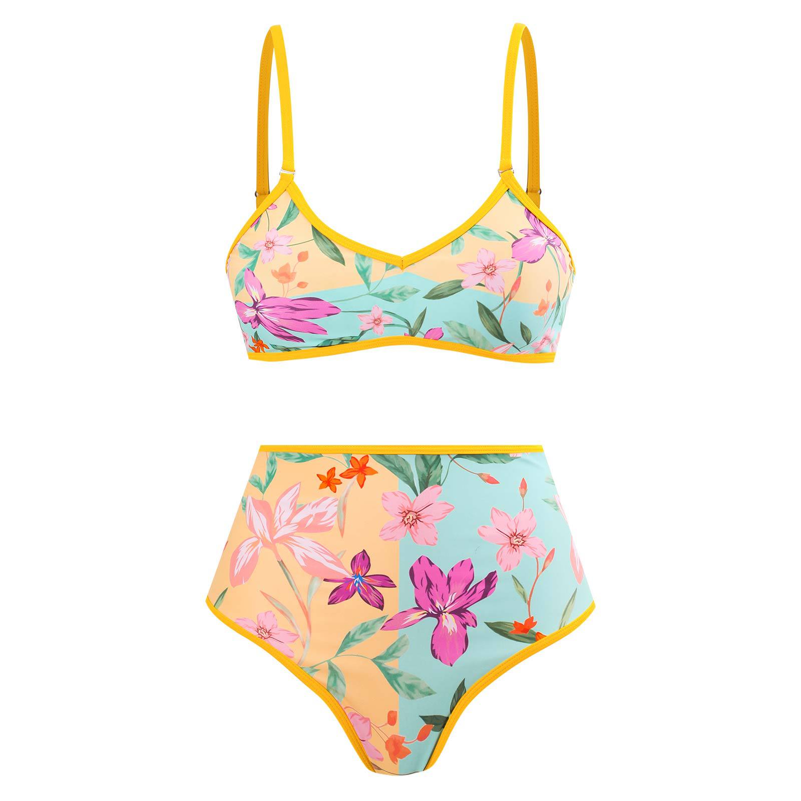 2025 새로운 레트로 하이 웨이스트 스플릿 3 피스 수영복 여성 유럽과 미국의 비키니 수영복 쉬폰 비치 스커트 세트