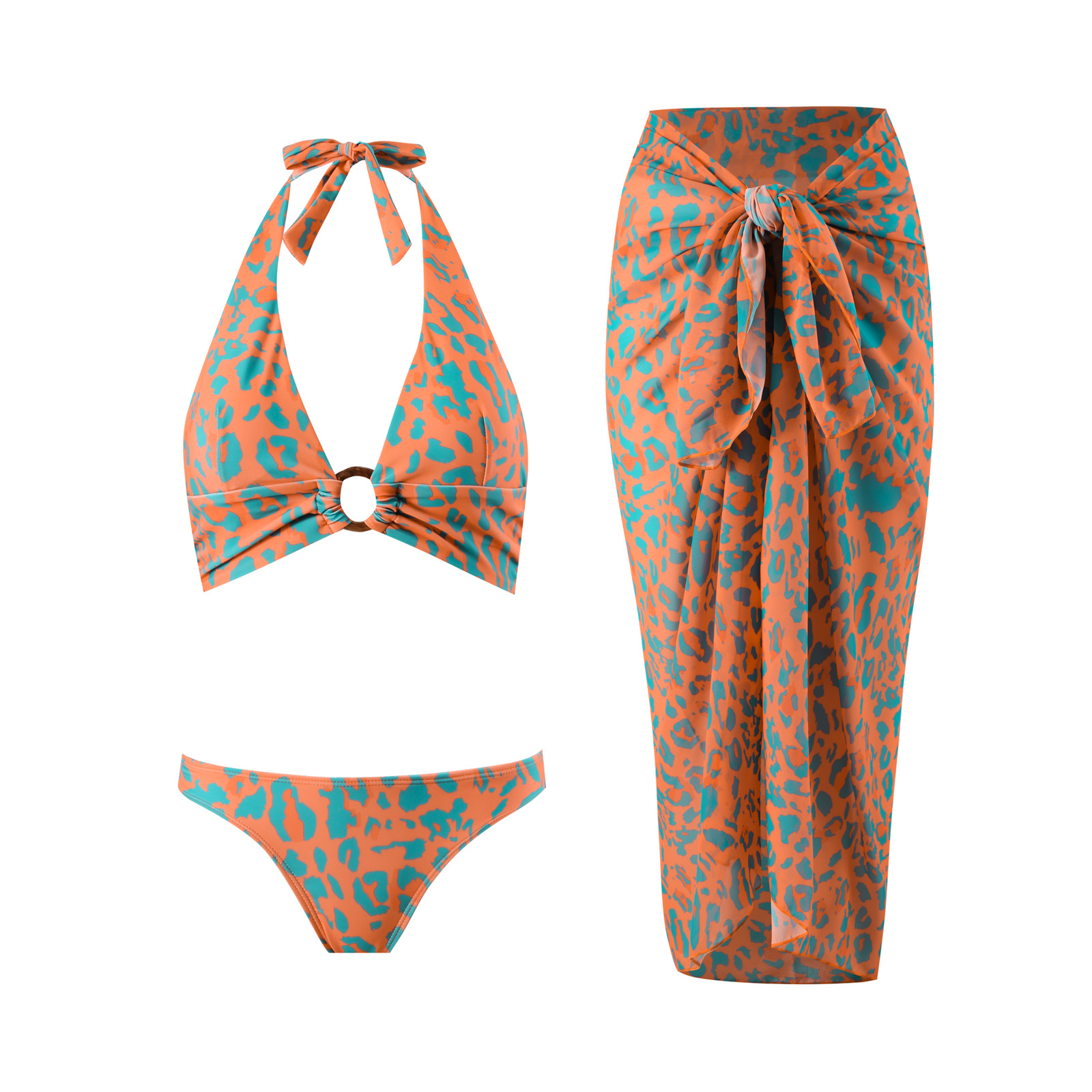 2025 새로운 레트로 하이 웨이스트 스플릿 3 피스 수영복 여성 유럽과 미국의 비키니 수영복 쉬폰 비치 스커트 세트스토어 가기