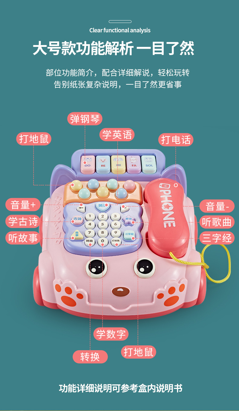 어린이 전화 장난감 0-1-3 세 아기 햄스터 이야기 시뮬레이션 피아노 음악 견인 로프 전화 도매스토어 가기