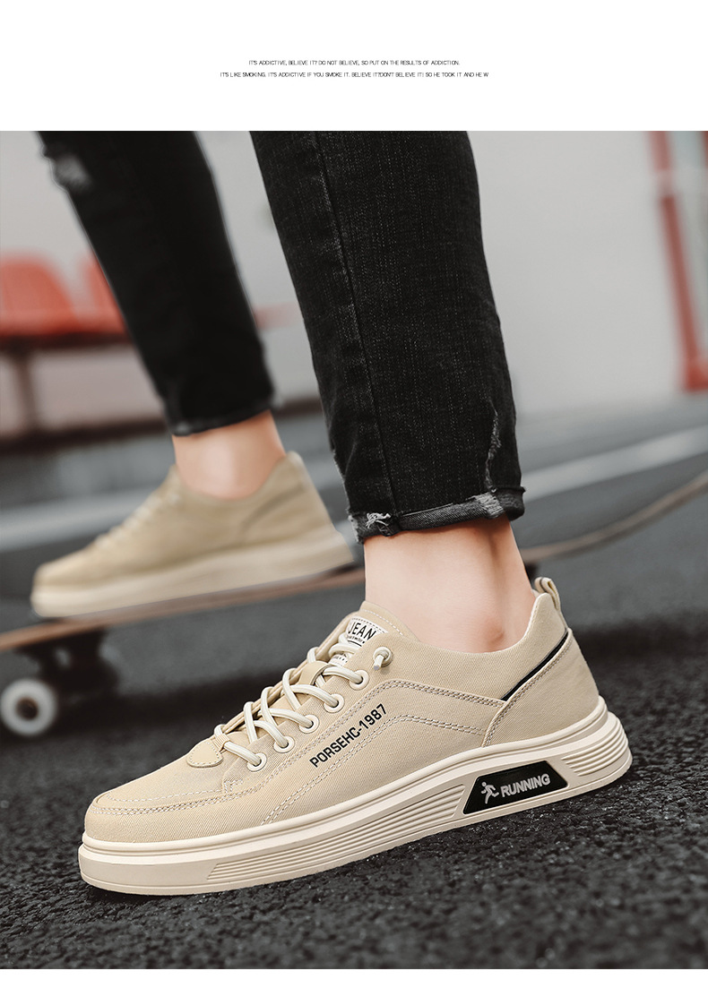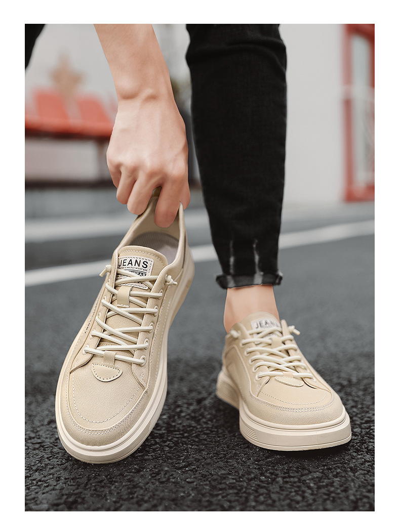 간단한 솔리드 컬러 캔버스 신발 학생 화이트 슈즈 매일 올 매치 통기성 슬립 온 레이스 업 무료 스포츠 스니커즈 남성 신발스토어 가기