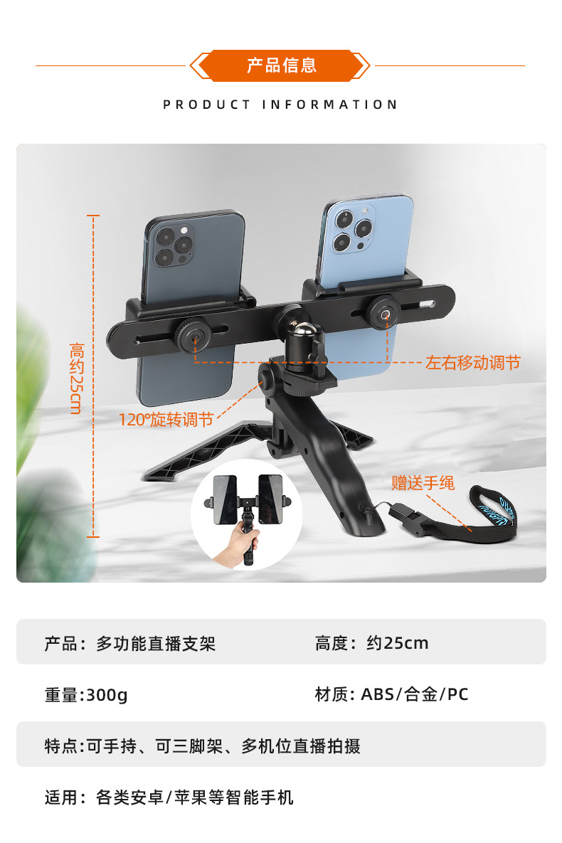 더블 휴대 전화 자동차 4S 샵 자동 쇼 라이브 브래킷 데스크탑 사진 휴대용 삼각대 야외 사진 유물