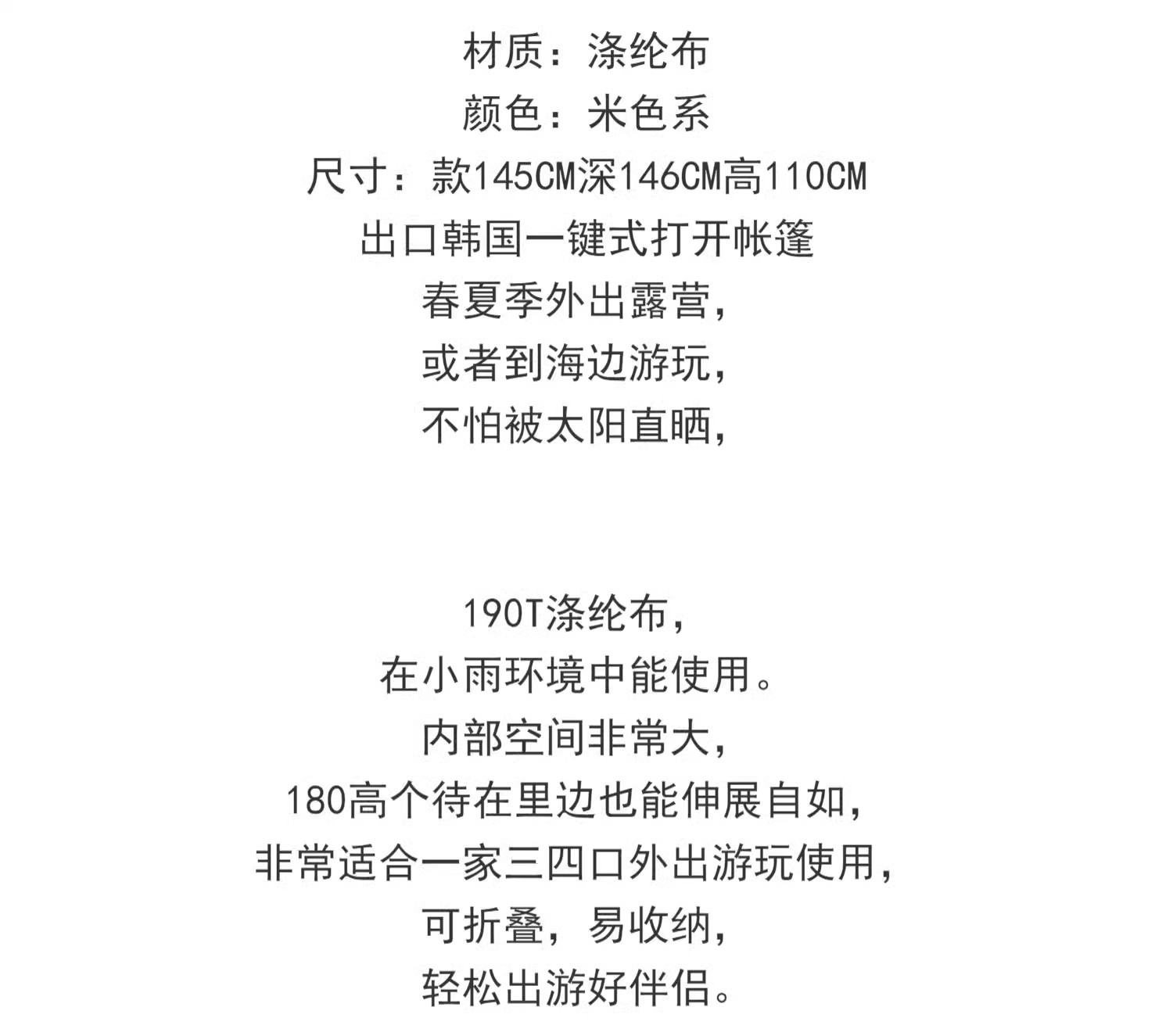 한국 같은 야외 캠핑 원 버튼 오픈 텐트 큰 공간 양산 정원 안뜰 게임 창고