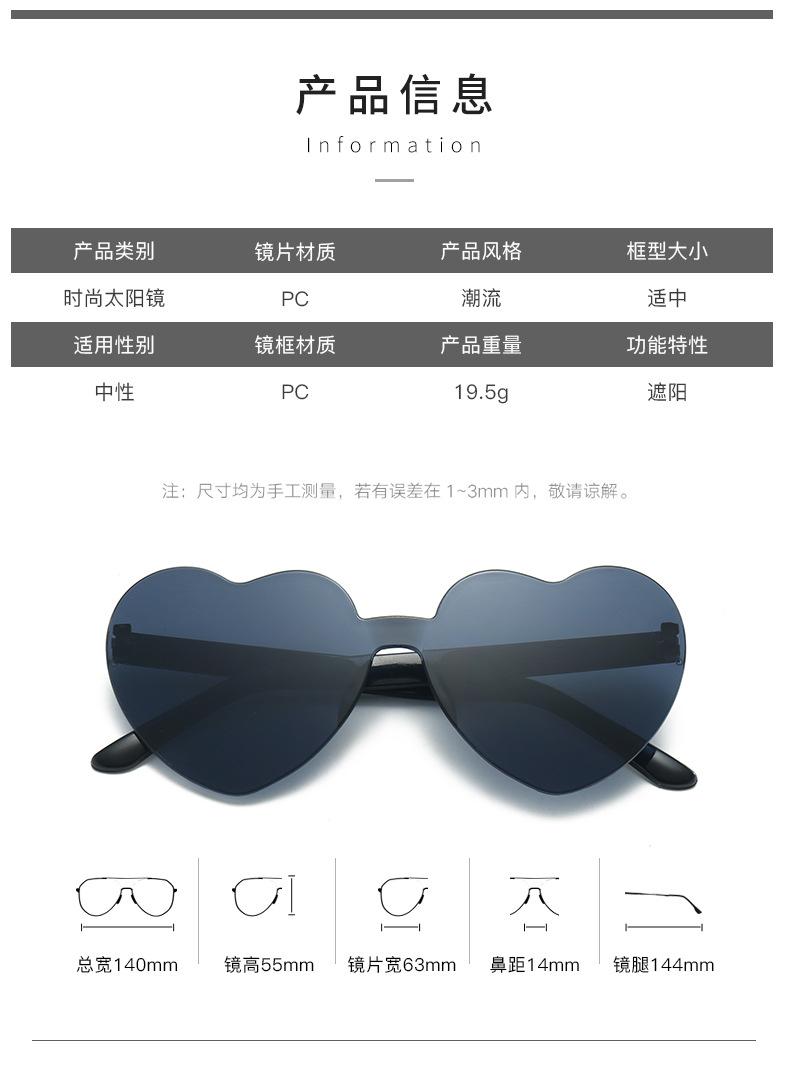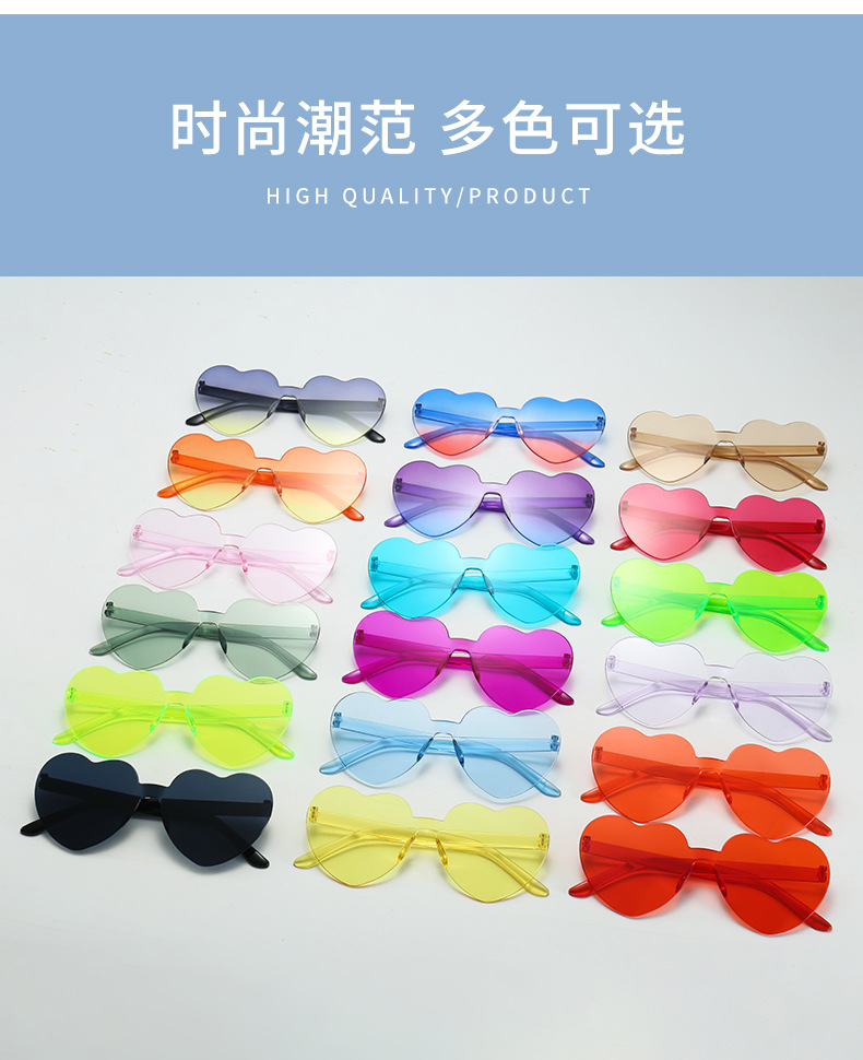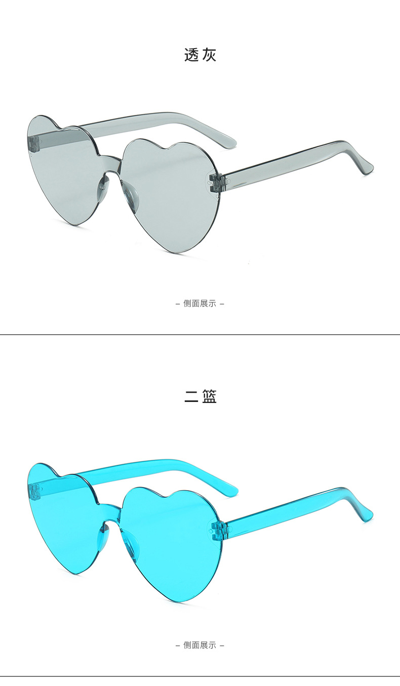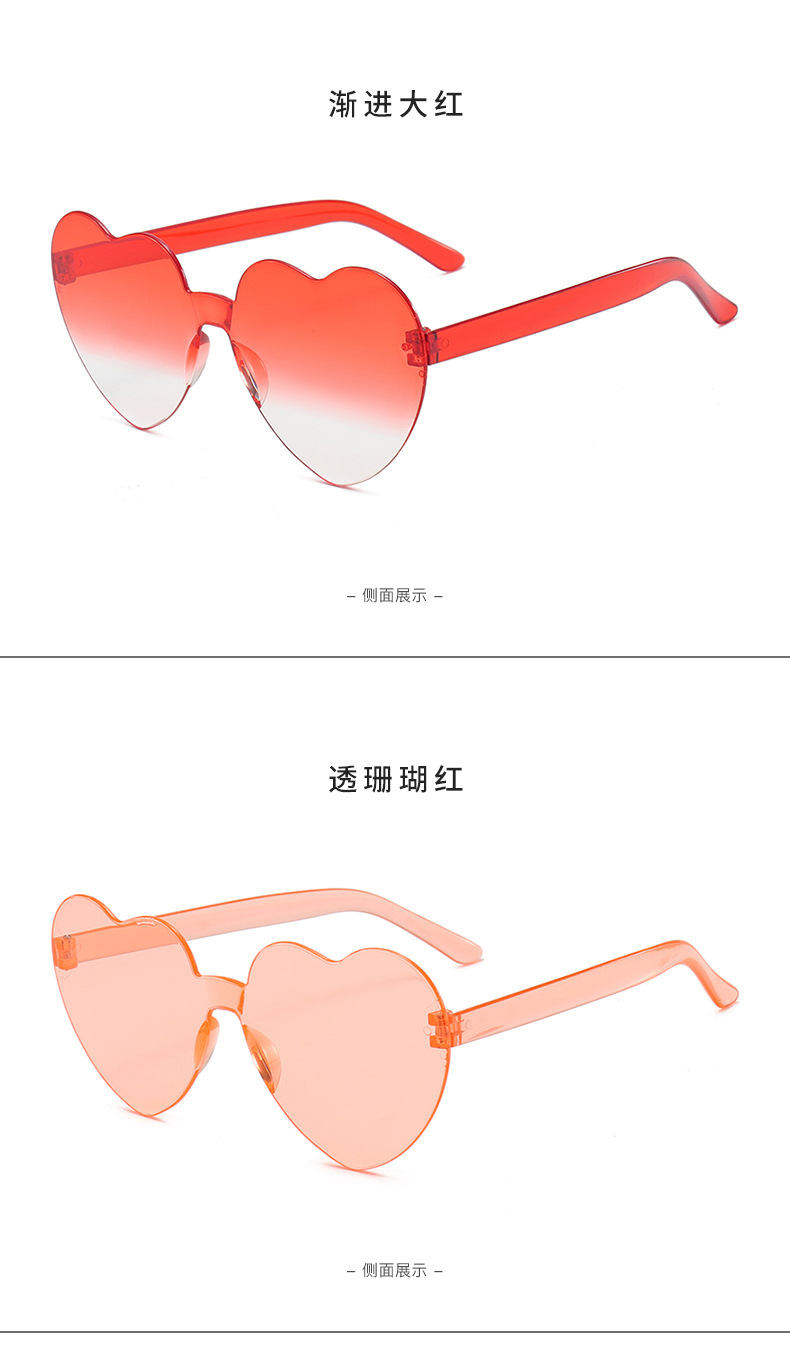 하트 선글라스 러브 선글라스 젤리 컬러 무테 하트 모양 원피스 선글라스 댄스 파티 프로모션 선물 안경스토어 가기