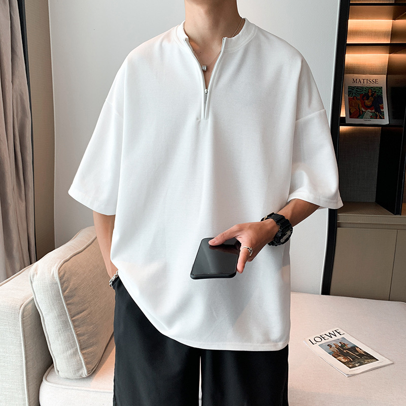 반팔 티셔츠 남성용 여름 특유의 루즈한 반팔 트렌디 올 매치 솔리드 컬러 심플 캐주얼 반팔 티셔츠 탑