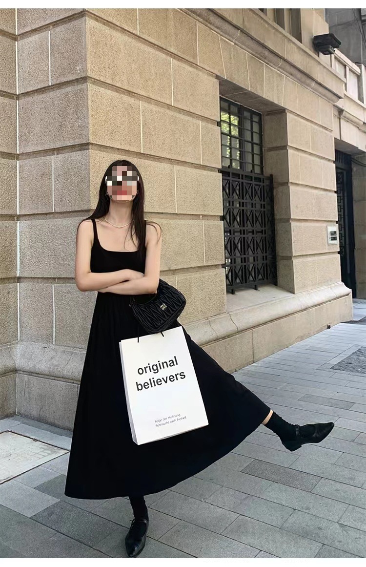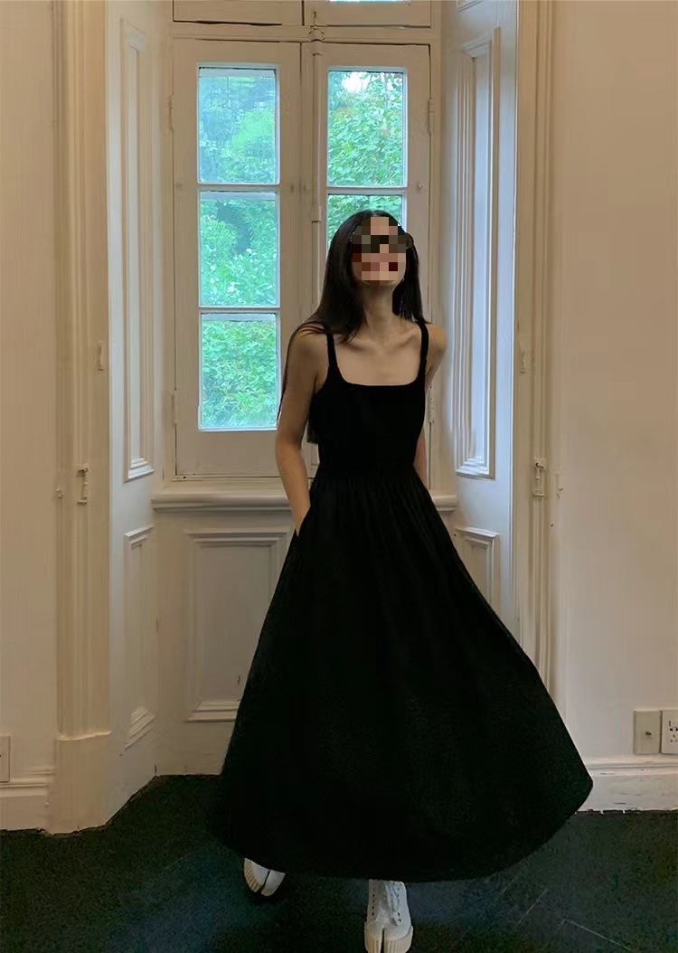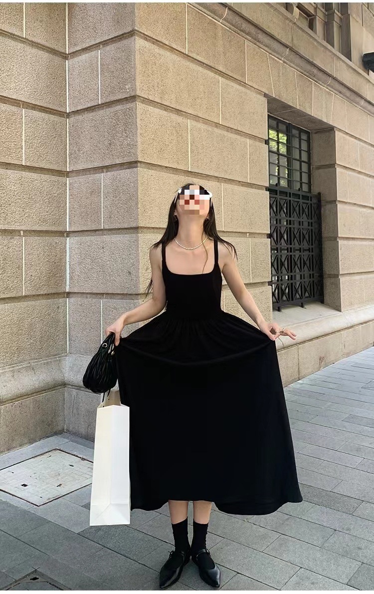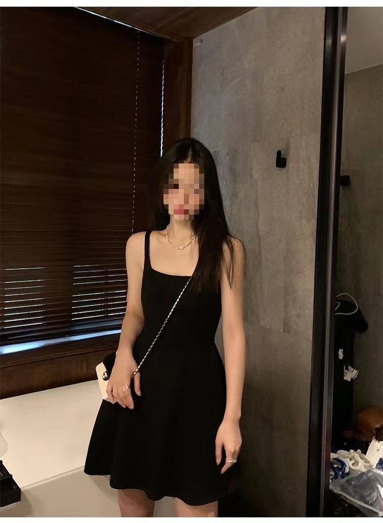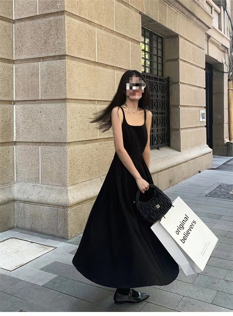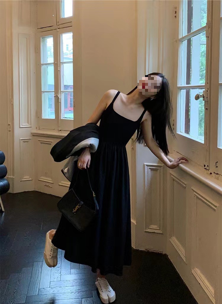 블랙 슬링 원피스 여성 여름 2023 새로운 한국식 슬림 A 라인 스커트 고급 우아한 웨이스트 스커트스토어 가기