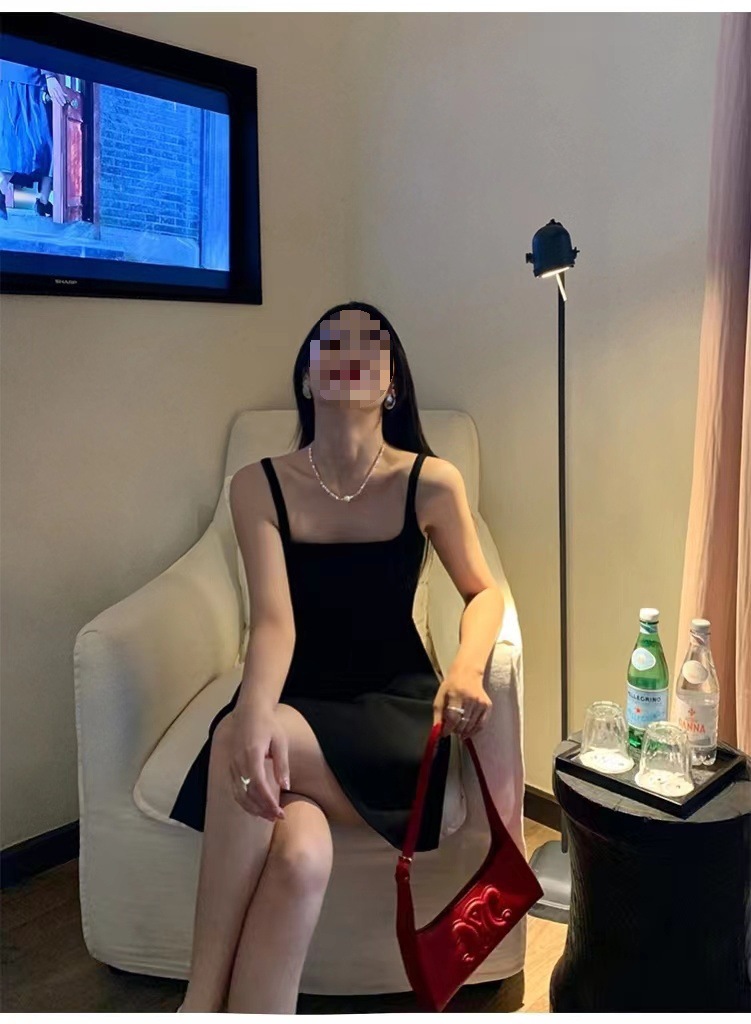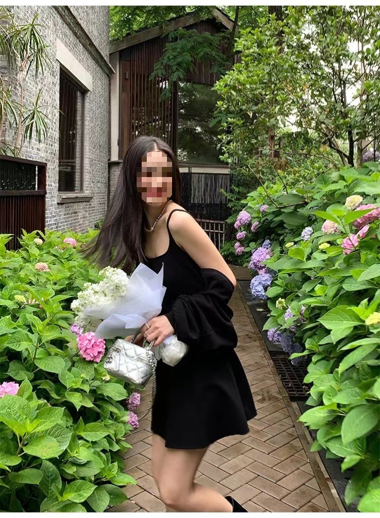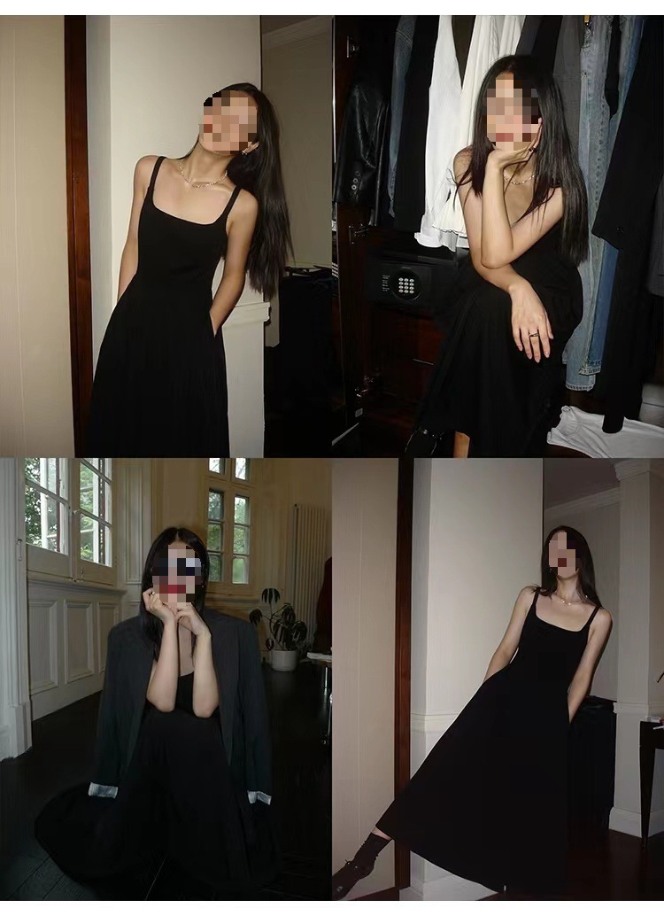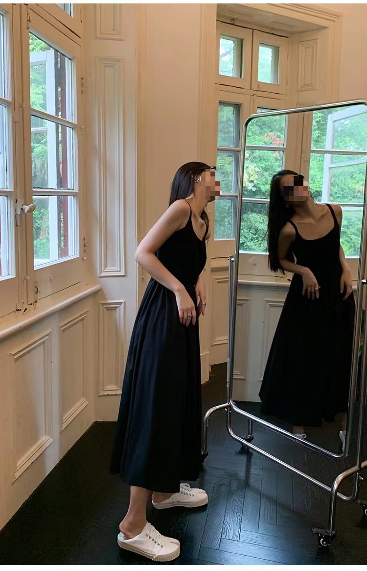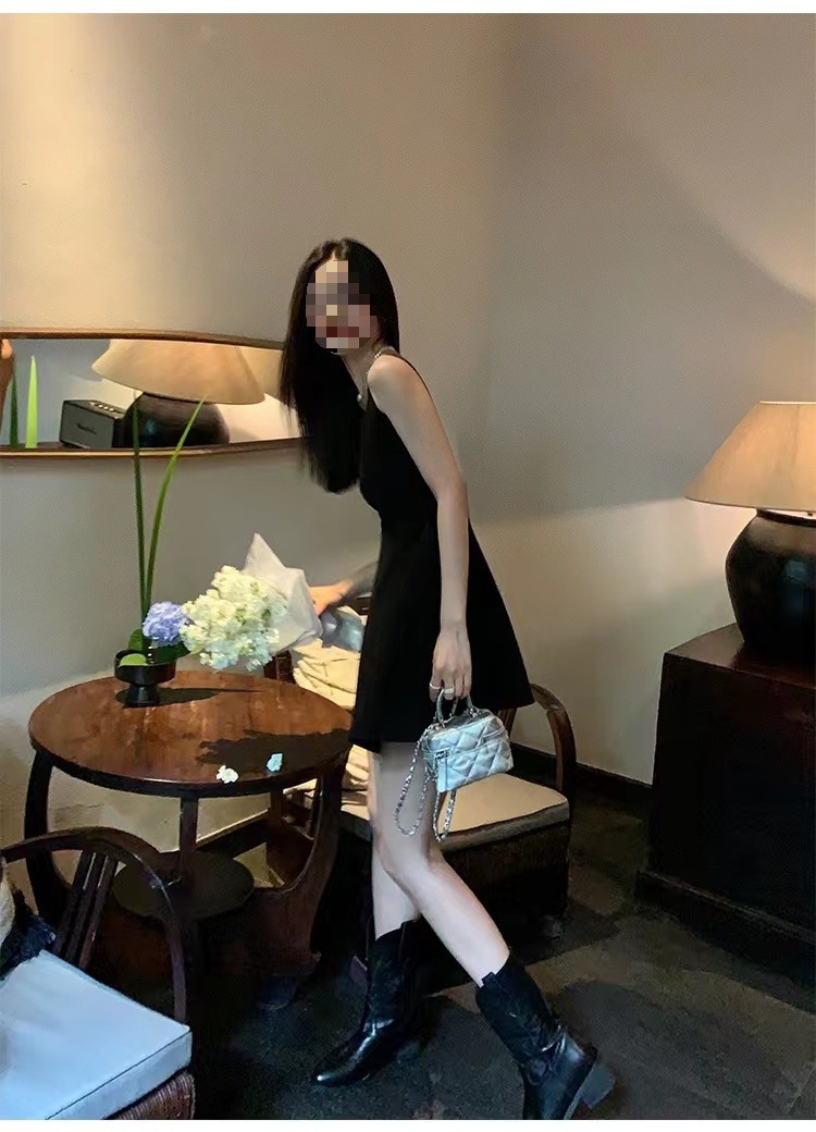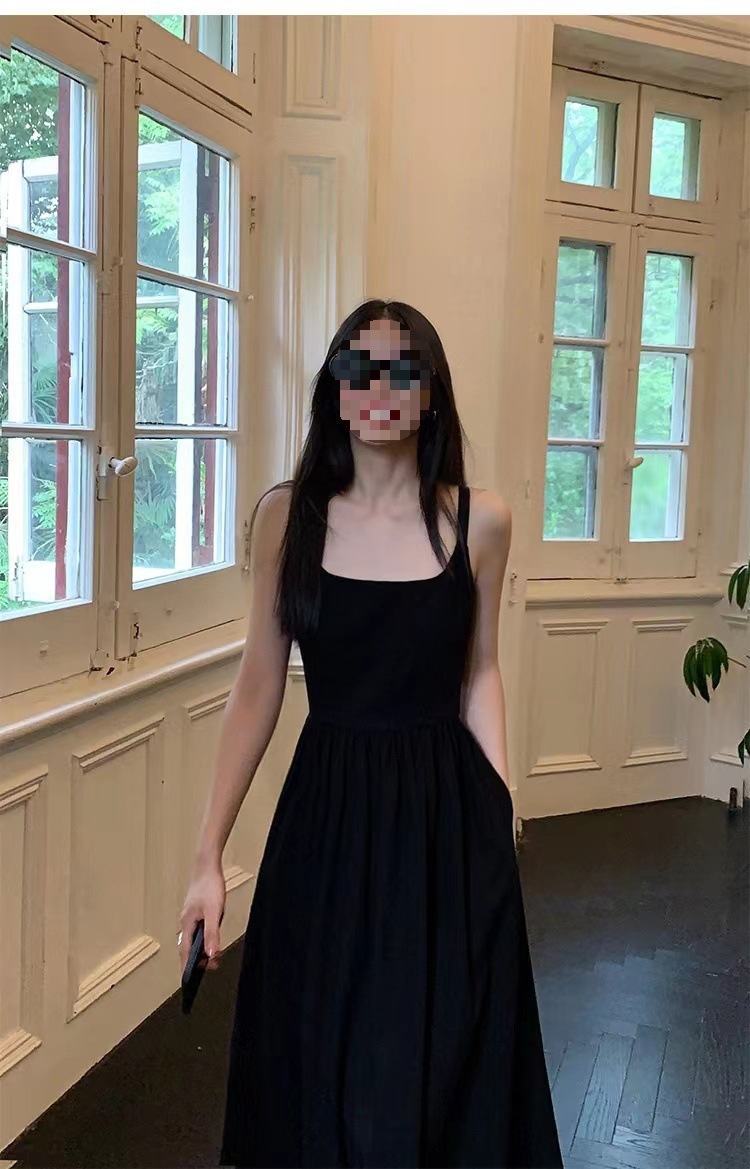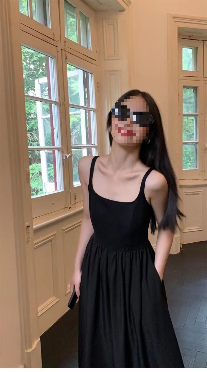 블랙 슬링 원피스 여성 여름 2023 새로운 한국식 슬림 A 라인 스커트 고급 우아한 웨이스트 스커트스토어 가기