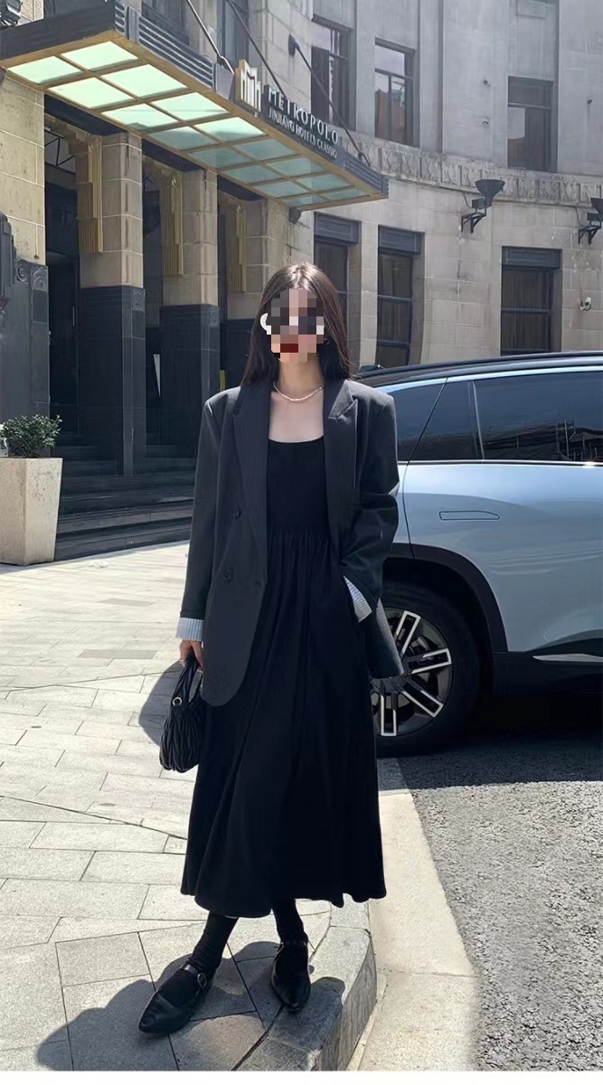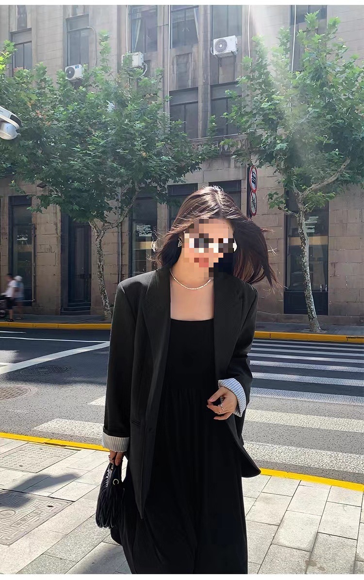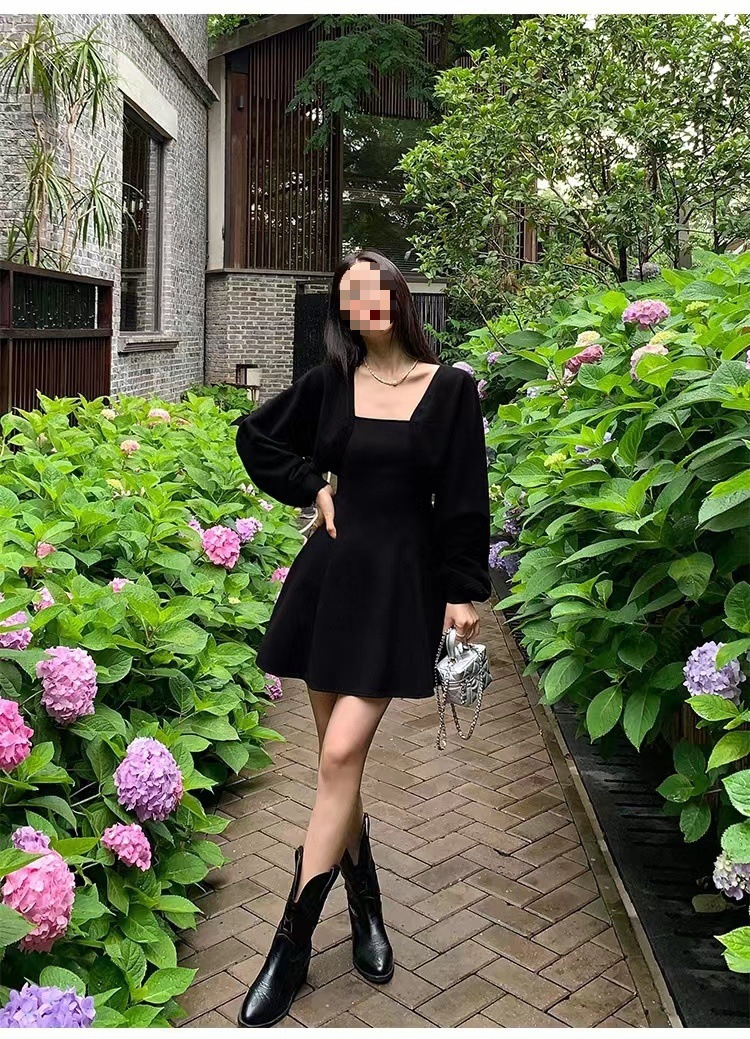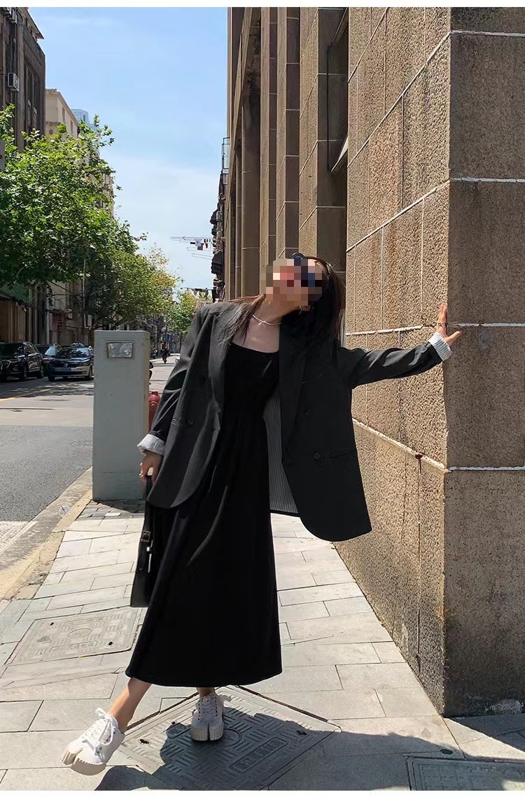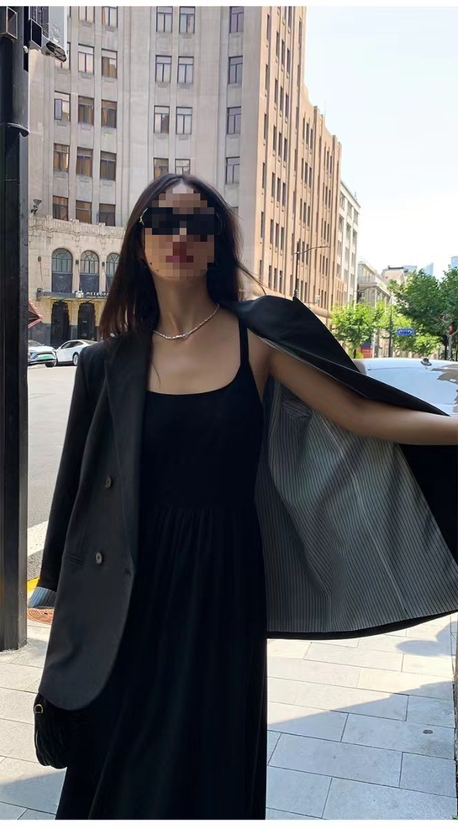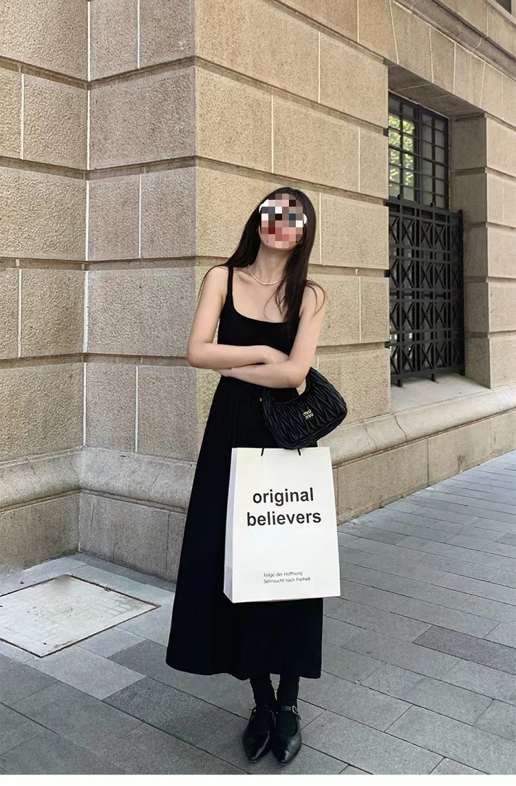 블랙 슬링 원피스 여성 여름 2023 새로운 한국식 슬림 A 라인 스커트 고급 우아한 웨이스트 스커트스토어 가기