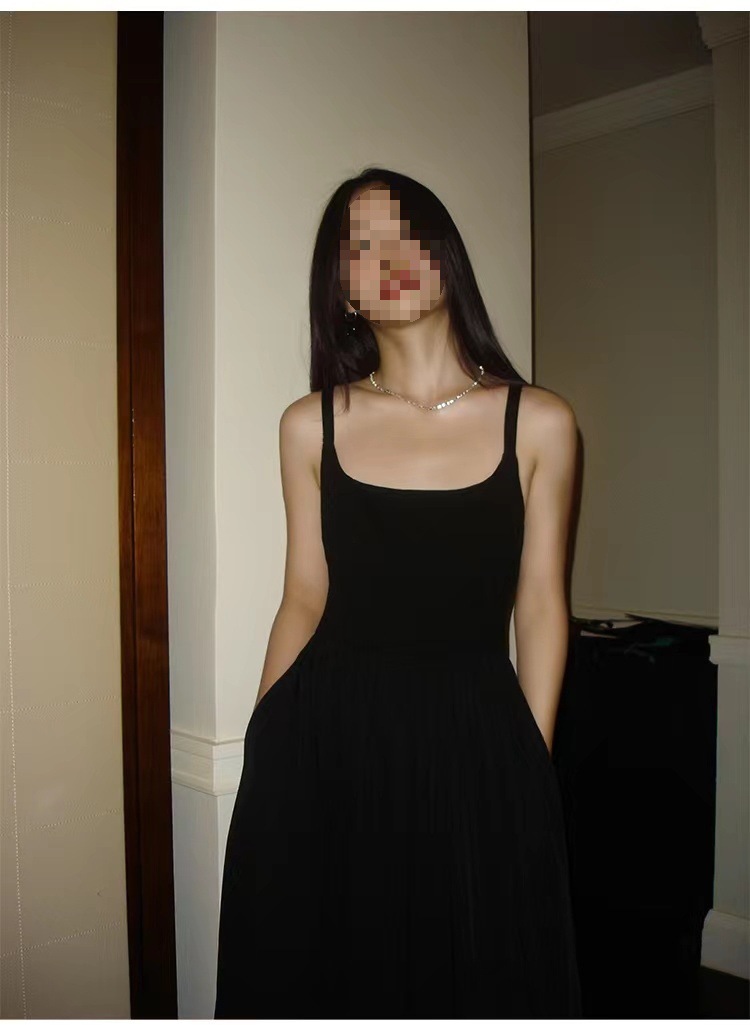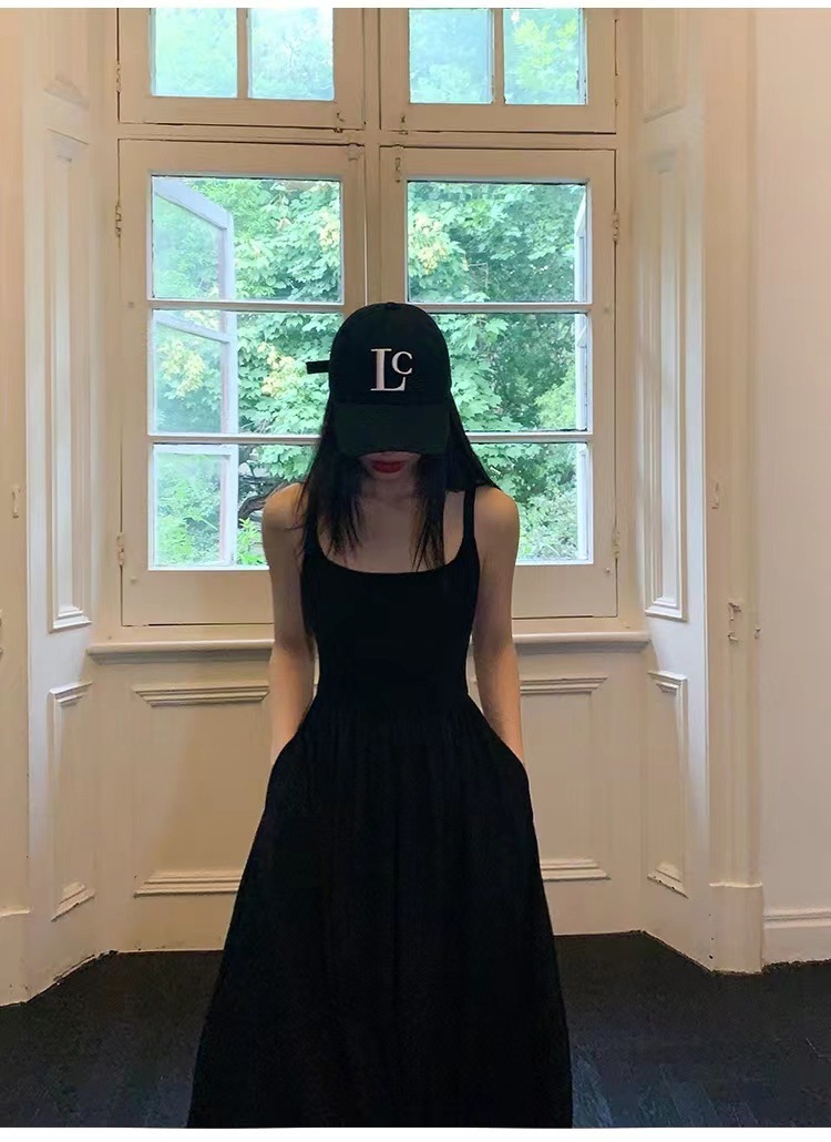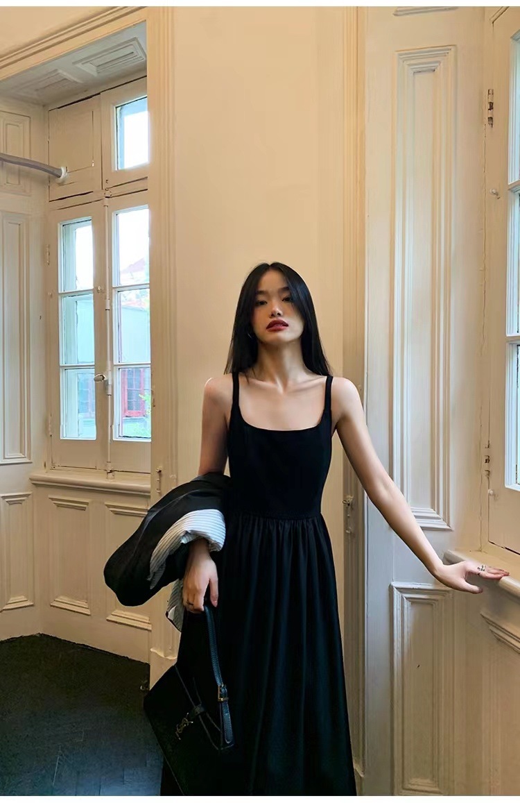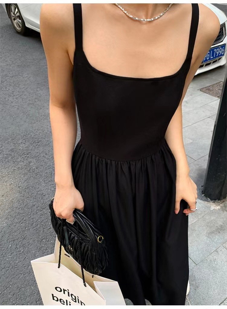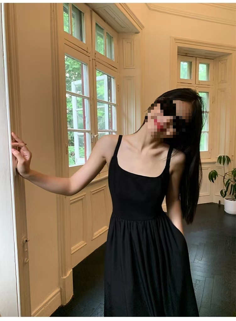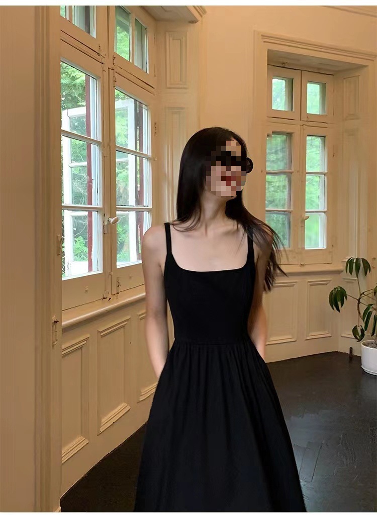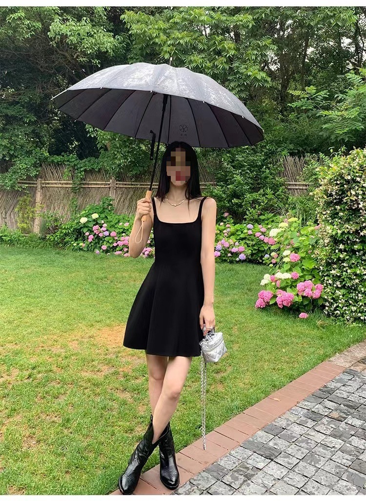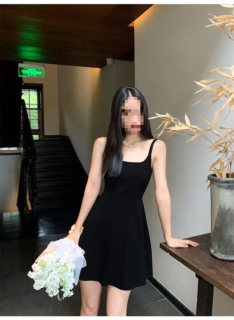 블랙 슬링 원피스 여성 여름 2023 새로운 한국식 슬림 A 라인 스커트 고급 우아한 웨이스트 스커트