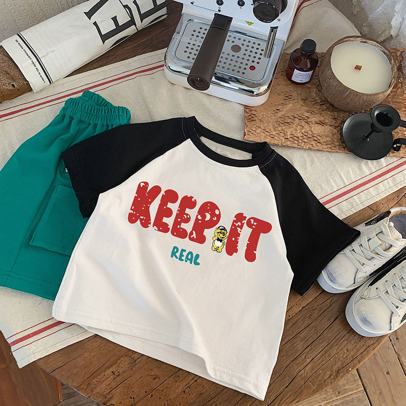 면 어린이 귀여운 아기 만화 반팔 티셔츠 여름 2024 새로운 스타일 중소 어린이 소년 및 어린이 탑 셔츠스토어 가기