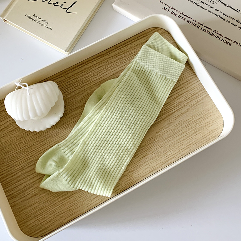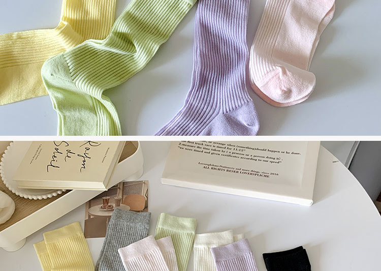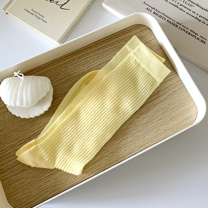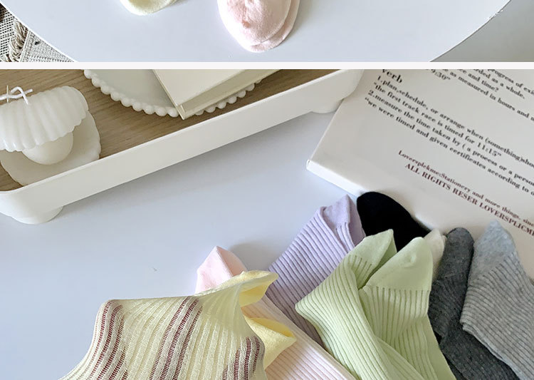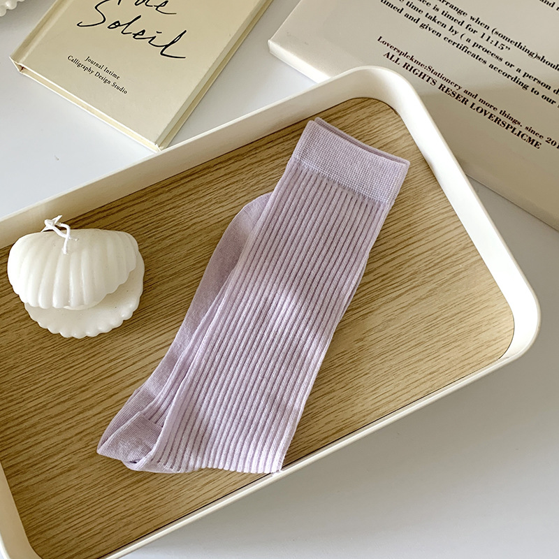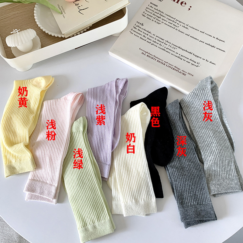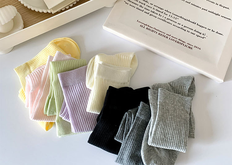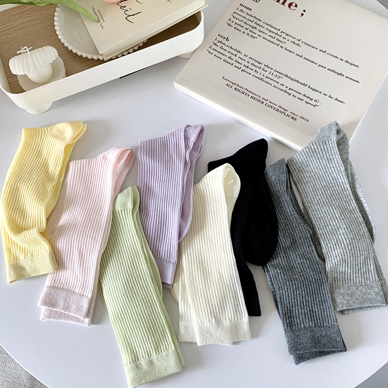 간단한 일반 스택 양말 여성용 중간 길이 얇은 단색 얕은 양말 여름 캔디 컬러 유행 양말에 한국 스타일