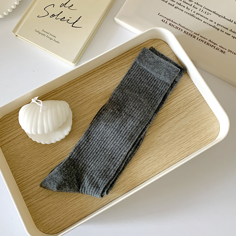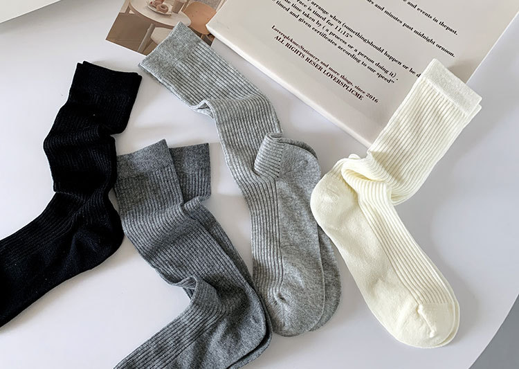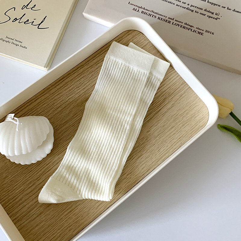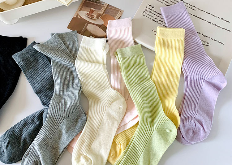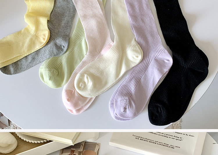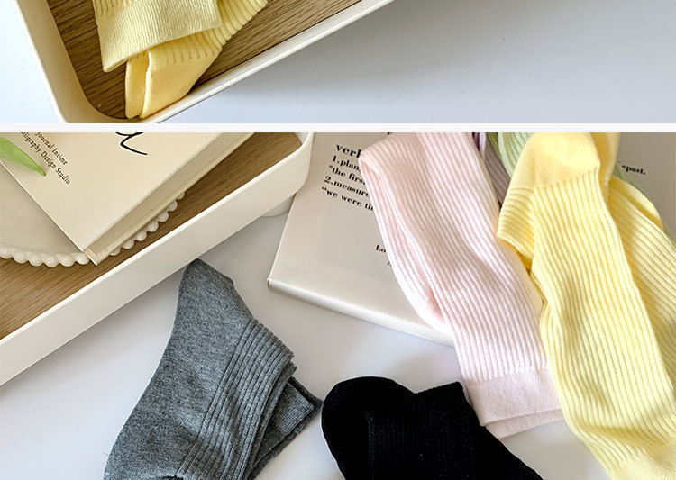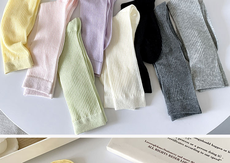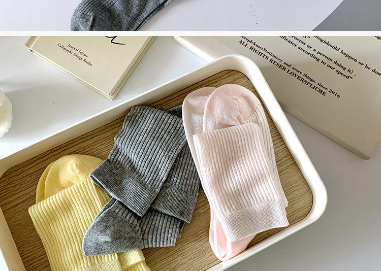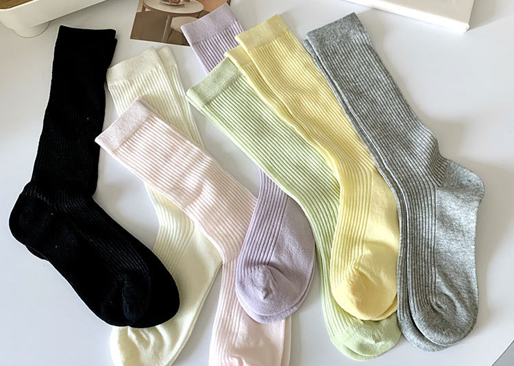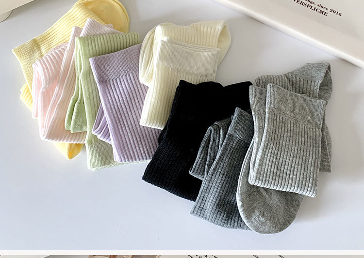 간단한 일반 스택 양말 여성용 중간 길이 얇은 단색 얕은 양말 여름 캔디 컬러 유행 양말에 한국 스타일