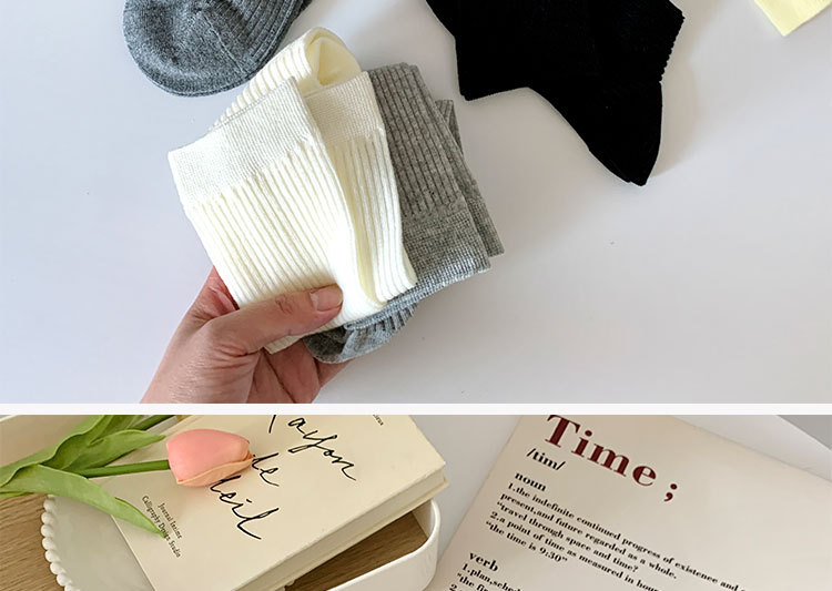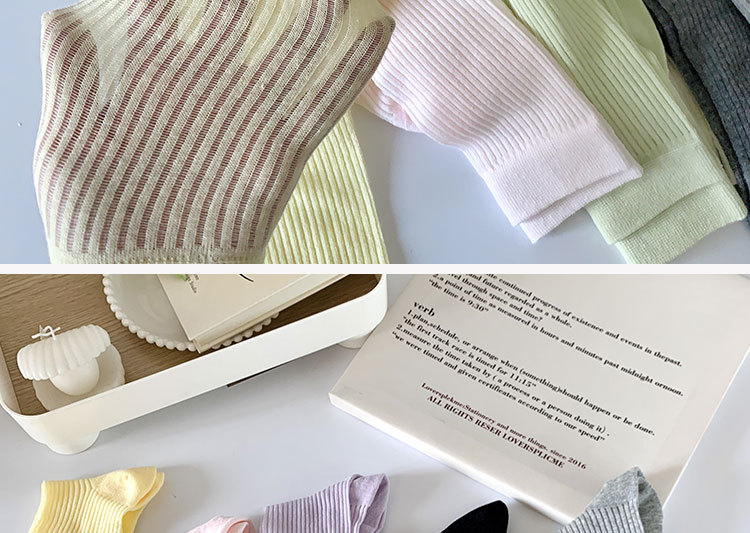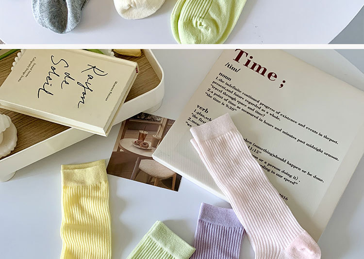 간단한 일반 스택 양말 여성용 중간 길이 얇은 단색 얕은 양말 여름 캔디 컬러 유행 양말에 한국 스타일스토어 가기