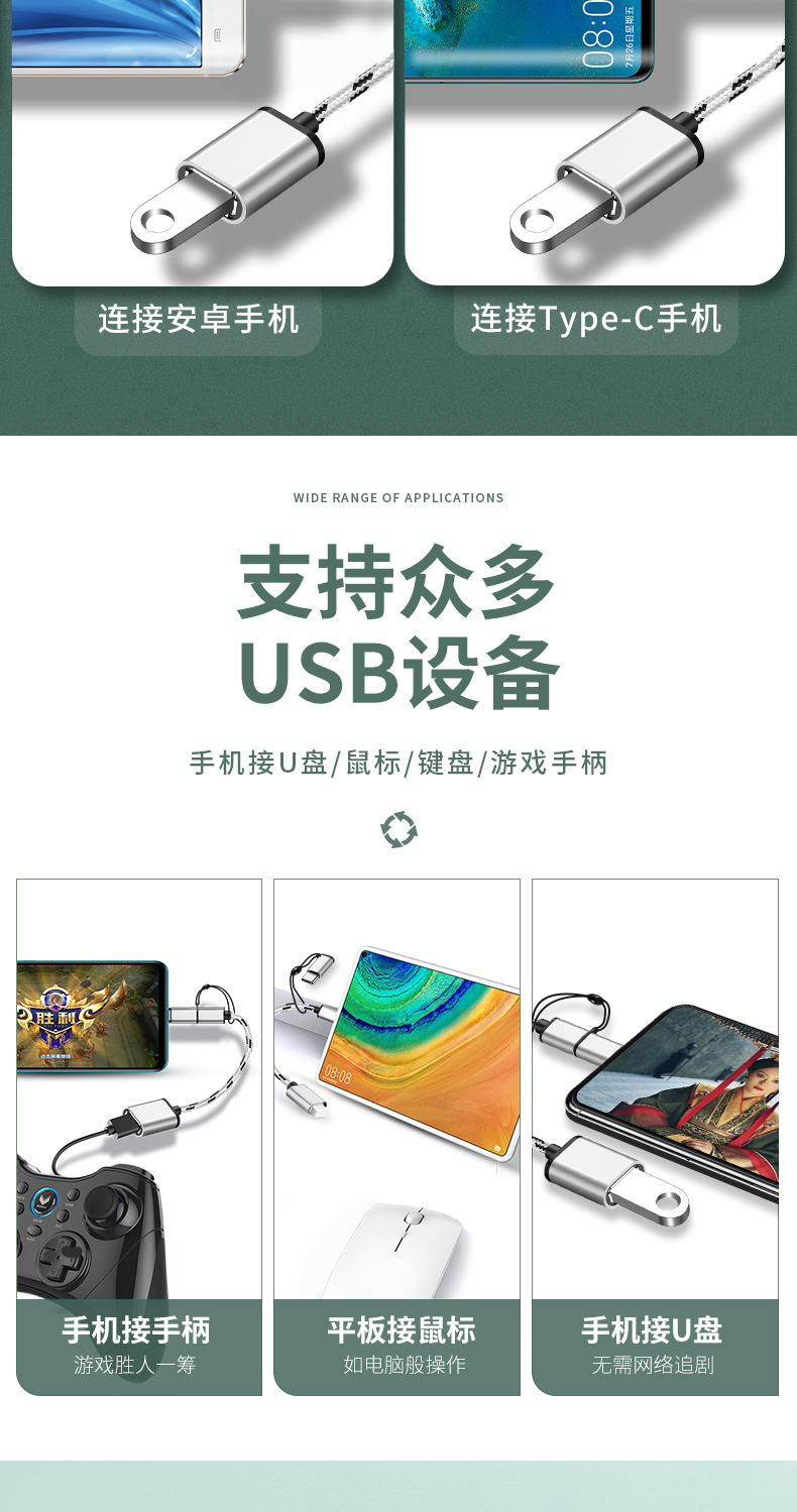USB 컨버터 휴대폰 충전 전송 데이터 케이블 투인원 어댑터 도매에 OTG 어댑터 타입
