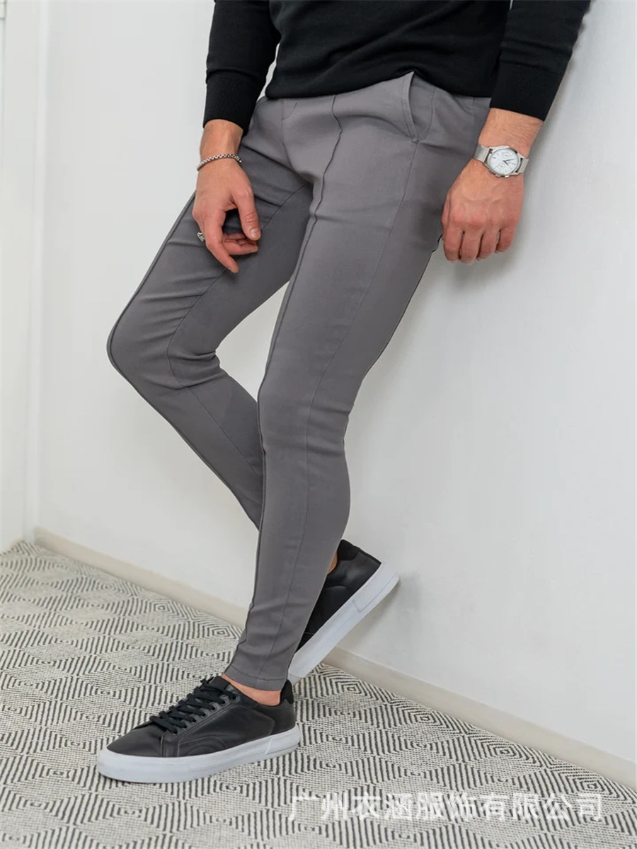 유럽과 미국 크로스 보더 핫 세일 남성용 단색 타이트 포켓 지퍼 비즈니스 캐주얼 데일리 슬림 핏 바지