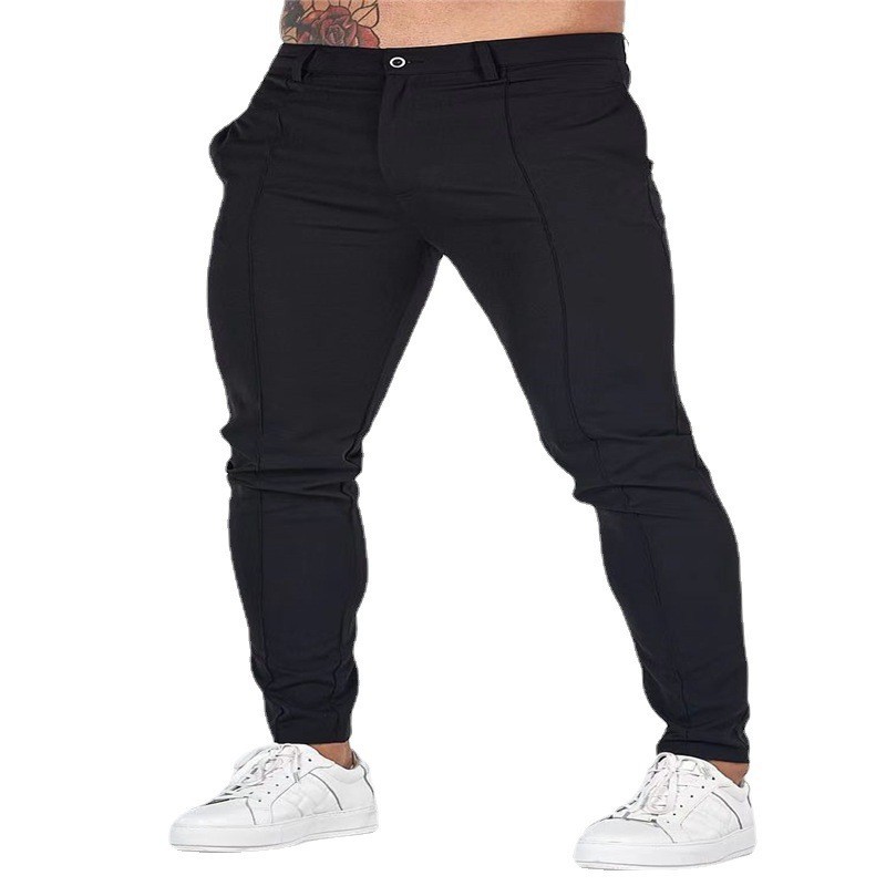 유럽과 미국 크로스 보더 핫 세일 남성용 단색 타이트 포켓 지퍼 비즈니스 캐주얼 데일리 슬림 핏 바지스토어 가기