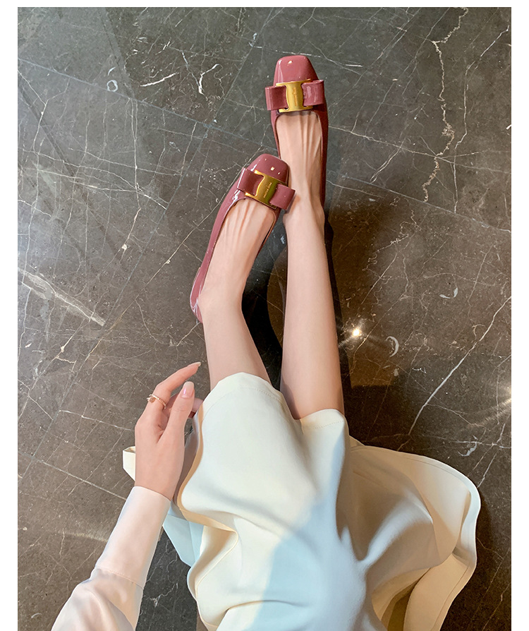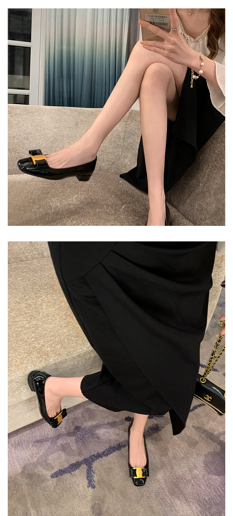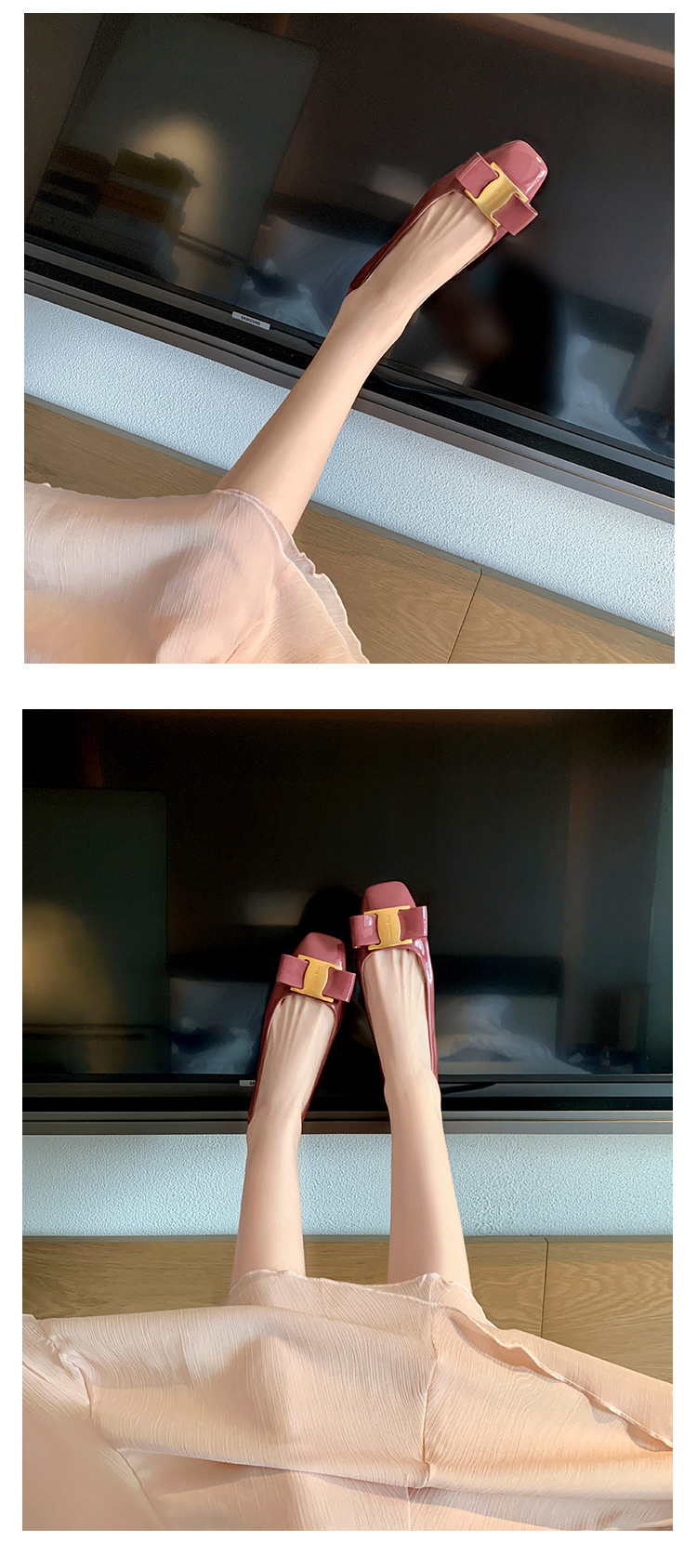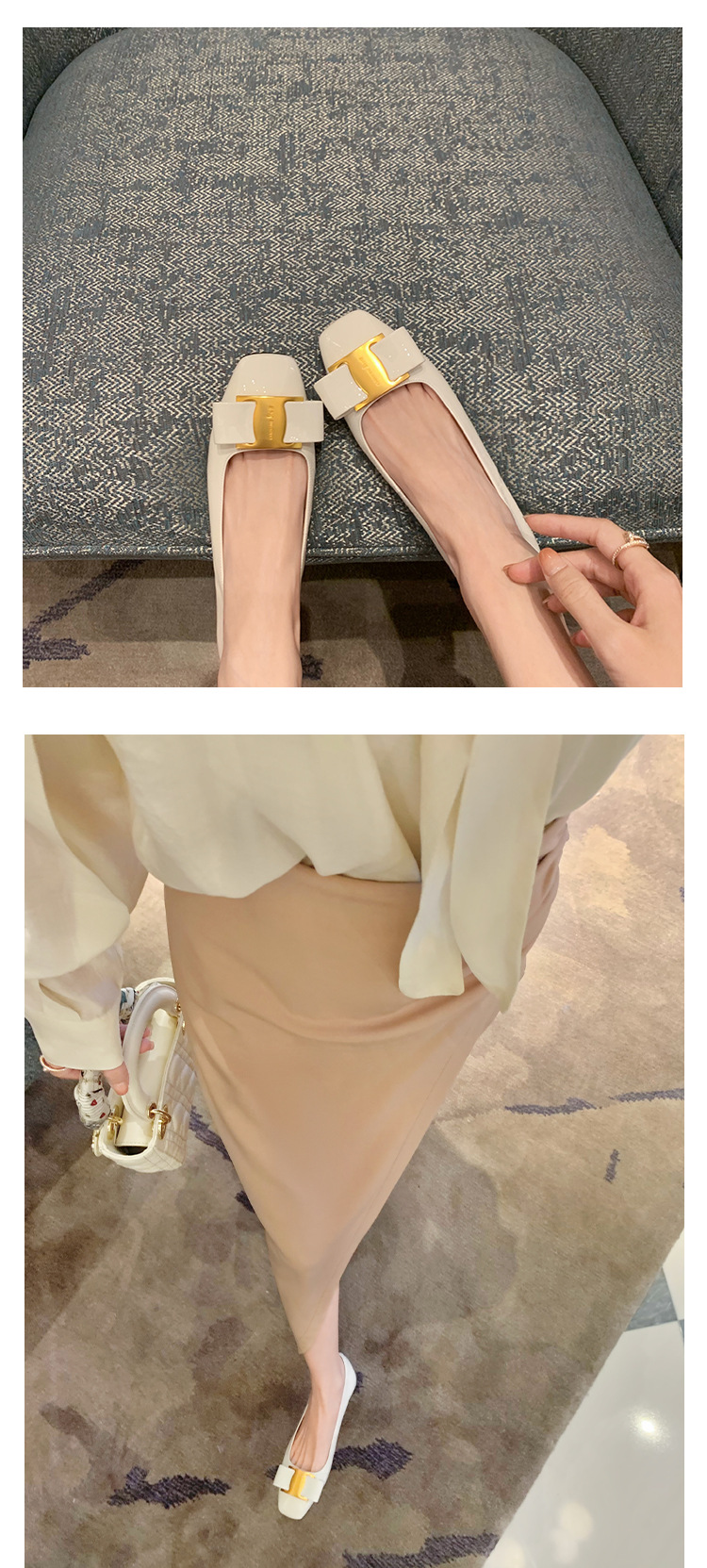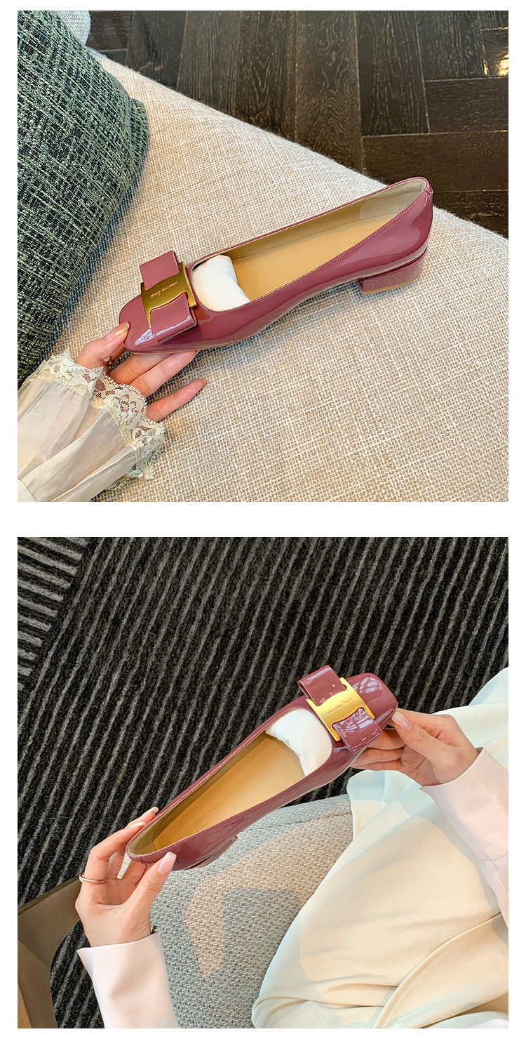 [Sheii Su Yinyin] 신임 감독 ~ 스퀘어 헤드 가죽 보우 골드 버튼 얕은 입 플랫 슈즈 여성 통근 신발