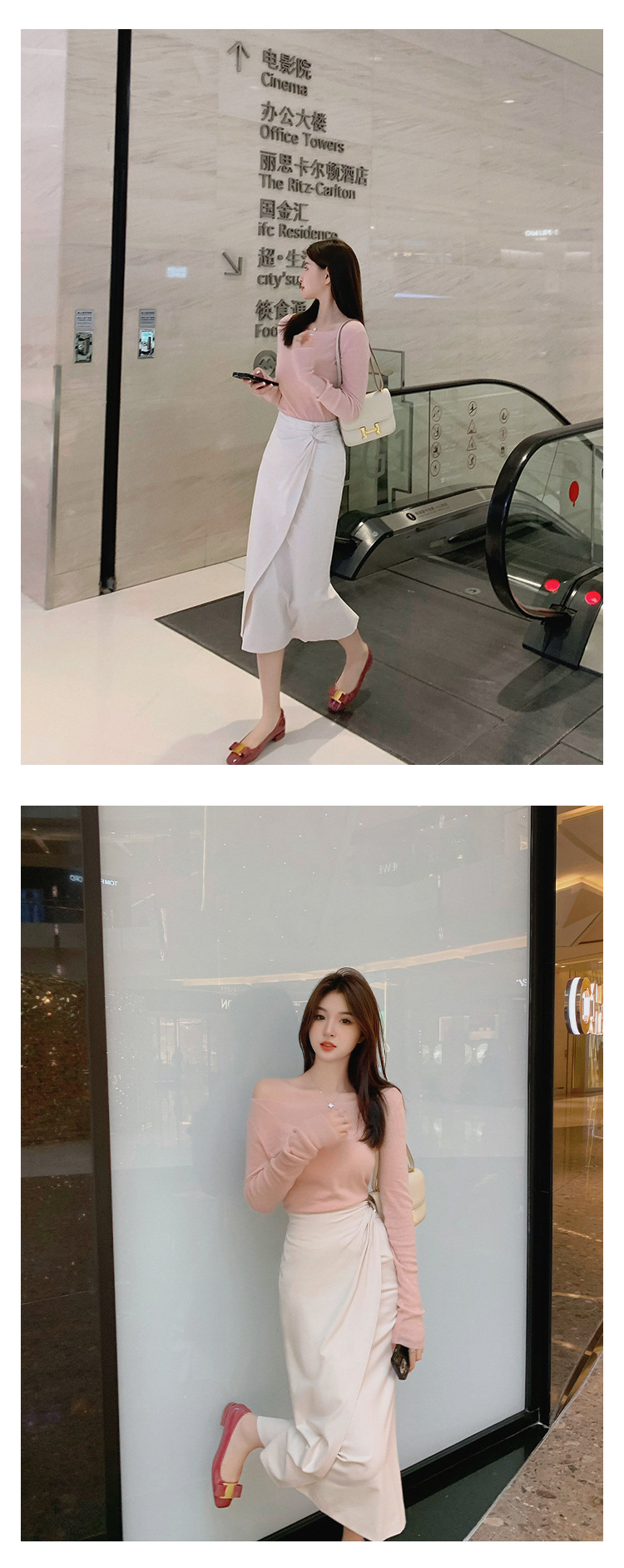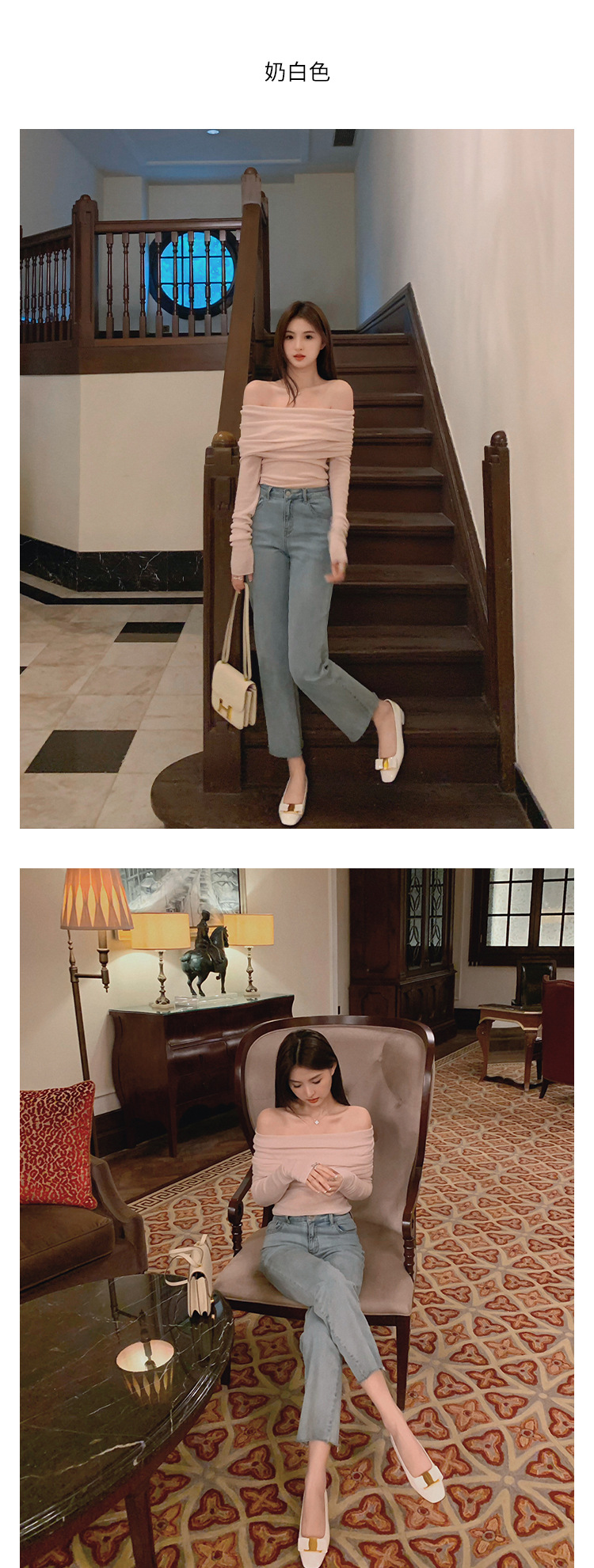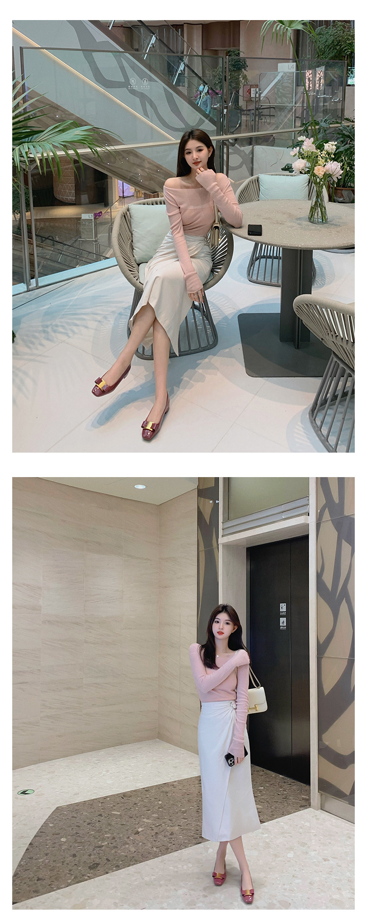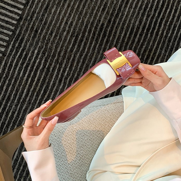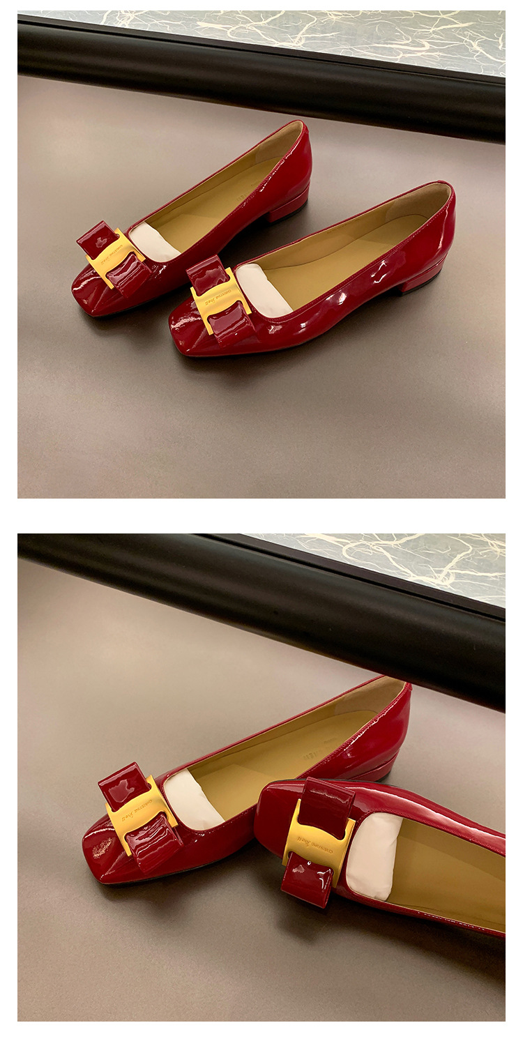 [Sheii Su Yinyin] 신임 감독 ~ 스퀘어 헤드 가죽 보우 골드 버튼 얕은 입 플랫 슈즈 여성 통근 신발