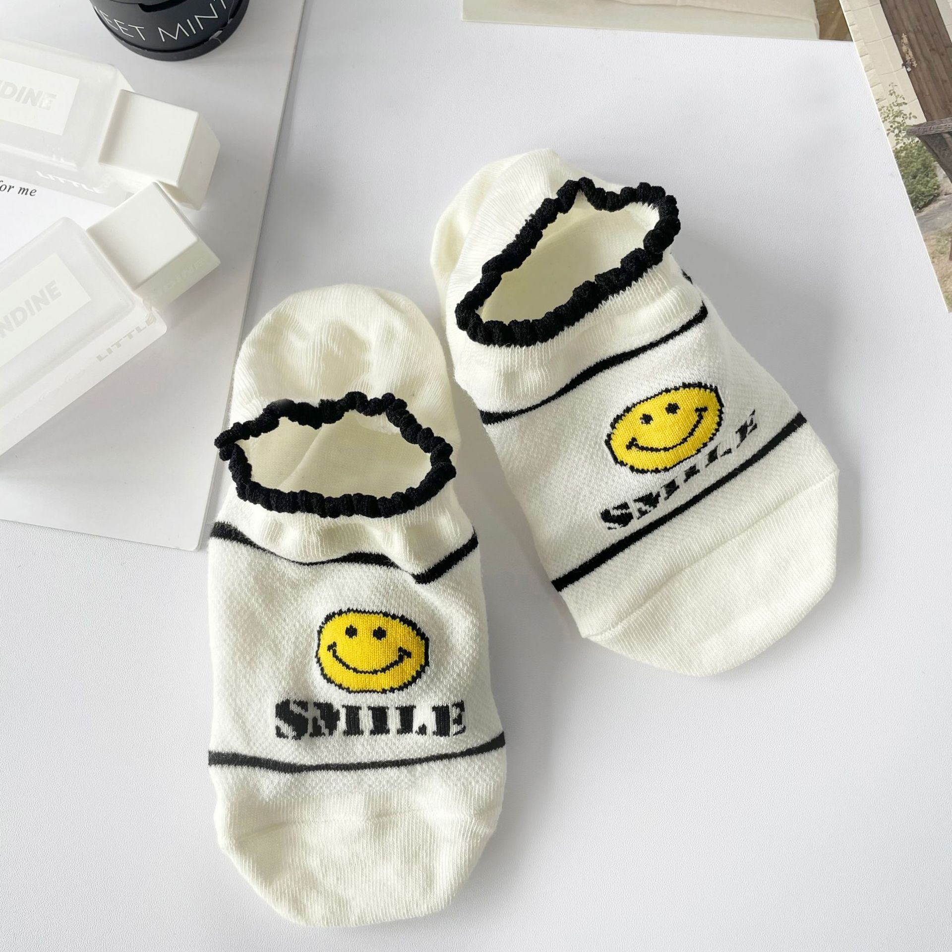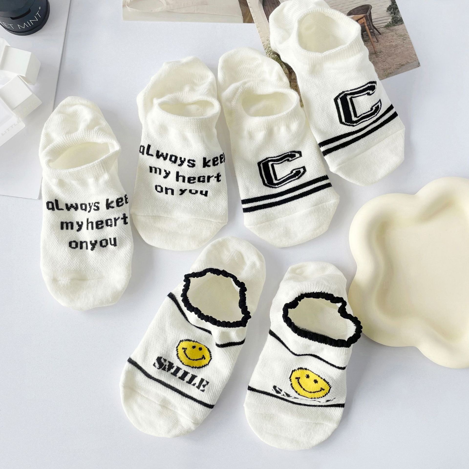 여름 새로운 여성용 짧은 양말 메쉬 통기성 양말 한국어 유행 양말 웃는 편지 양말 보이지 않는 양말 보트 양말 면 양말