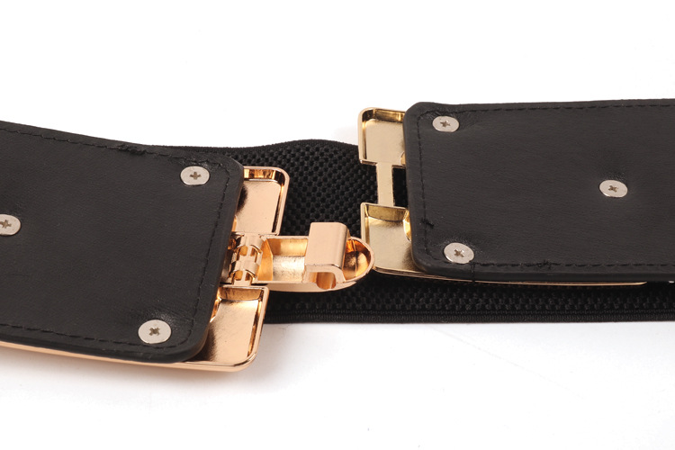 간단한 패션 숙녀 탄성 와이드 벨트 버클 여성의 탄성 몸 형성 허리 커버 코트 재고 도매의 한국어 버전