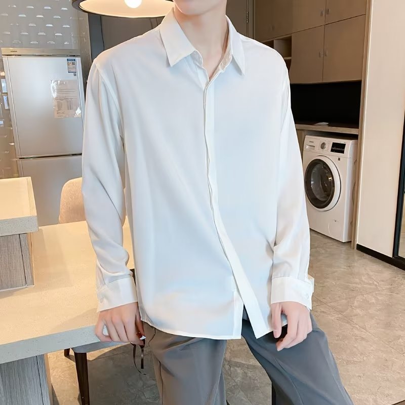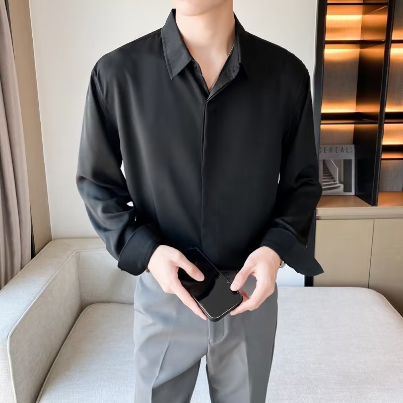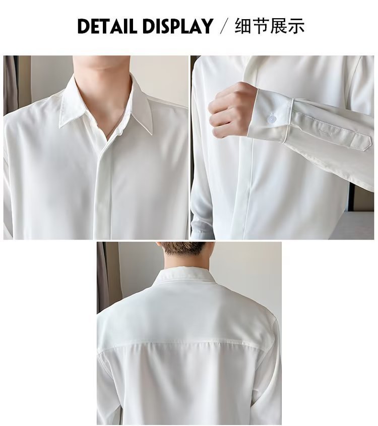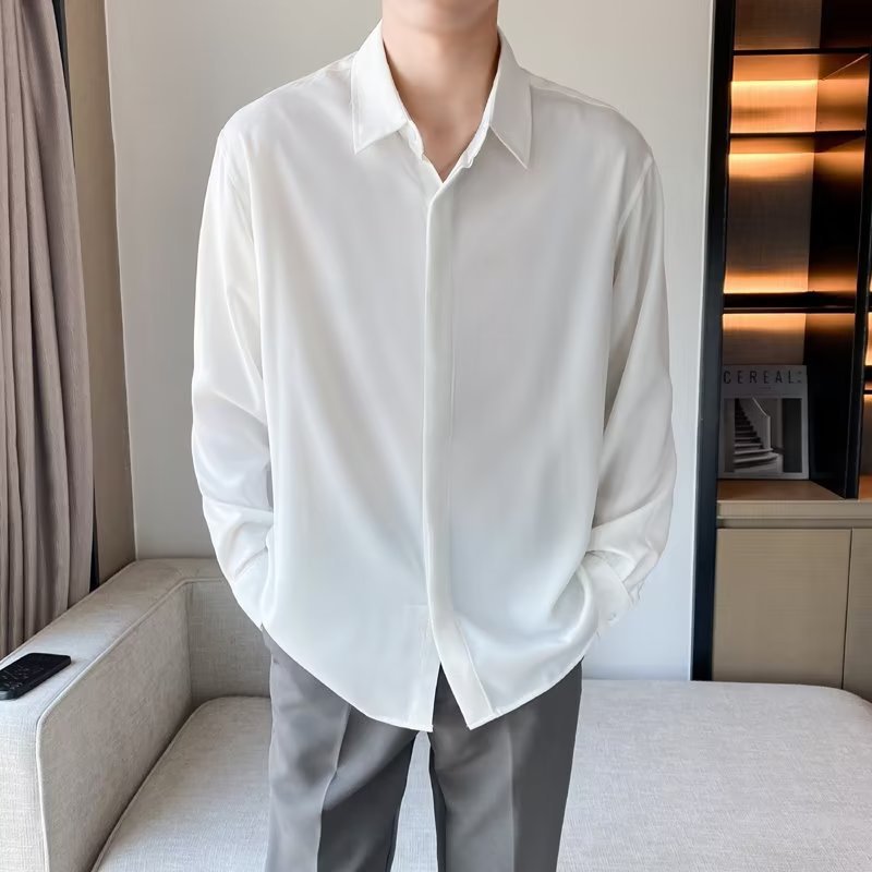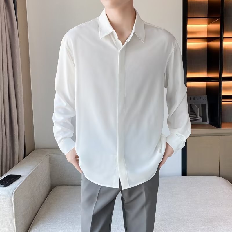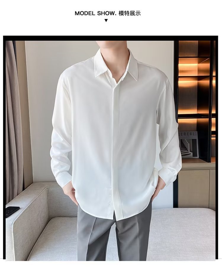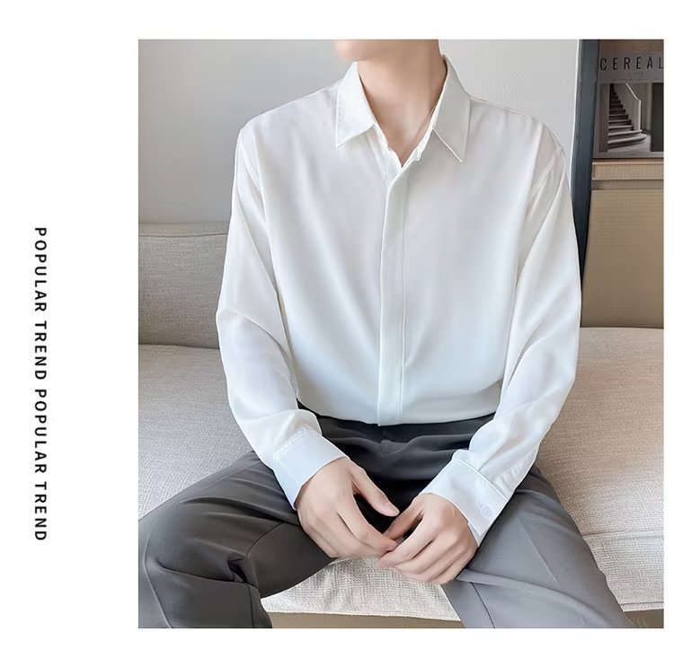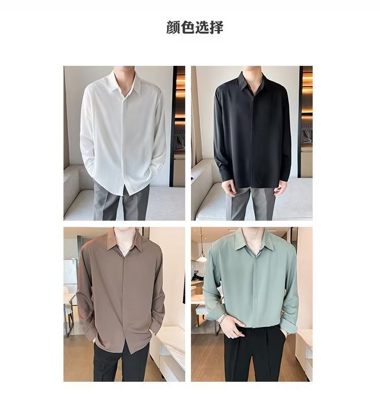 여름 빛 성숙한 고급 쉬폰 아이스 실크 우아한 셔츠 남성용 긴팔 루즈한 한국식 내부 비 철 셔츠스토어 가기