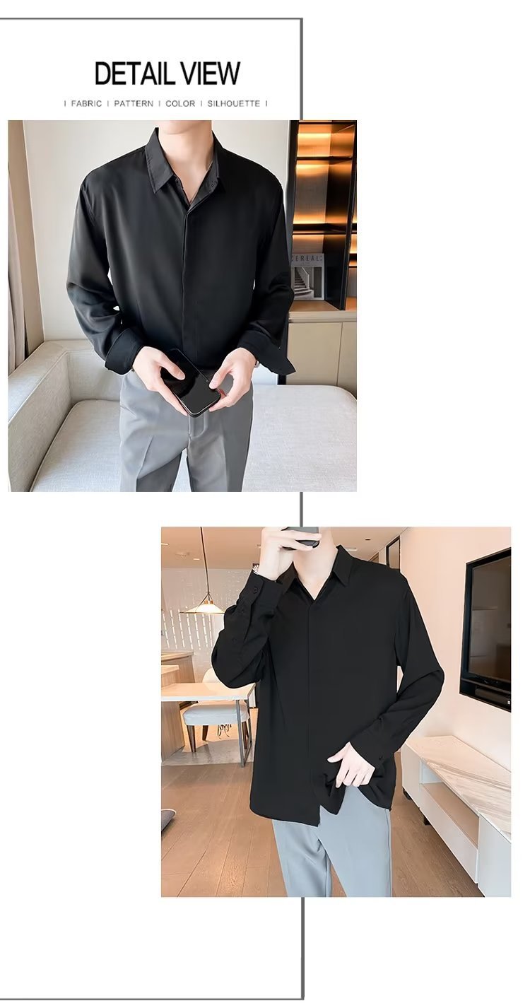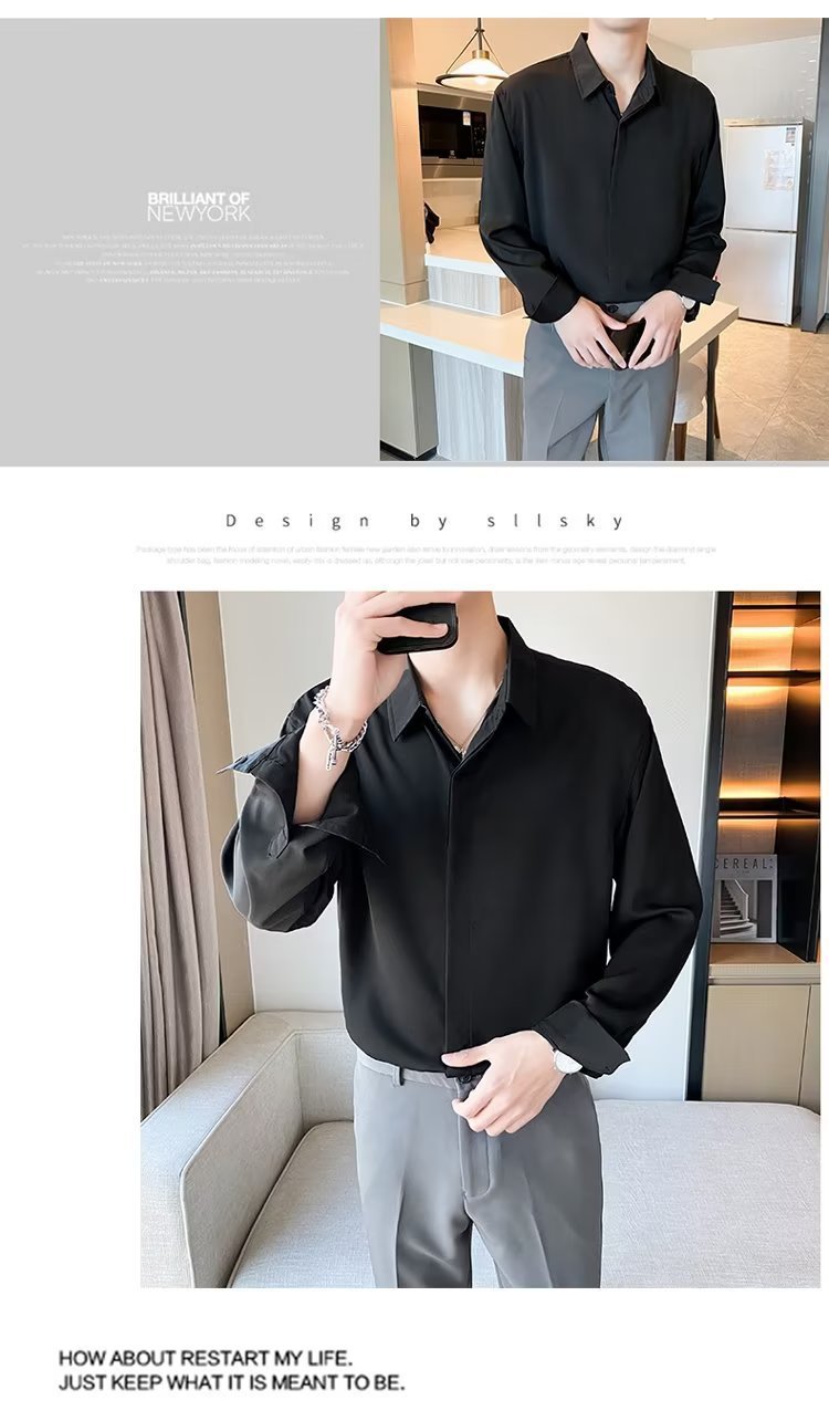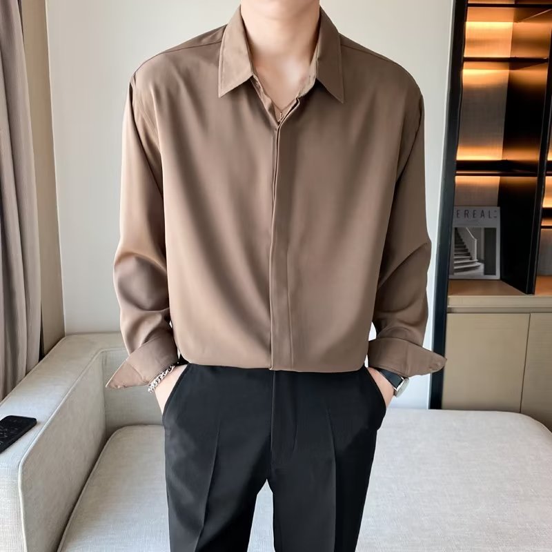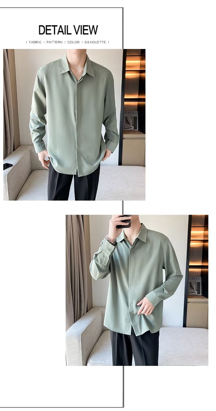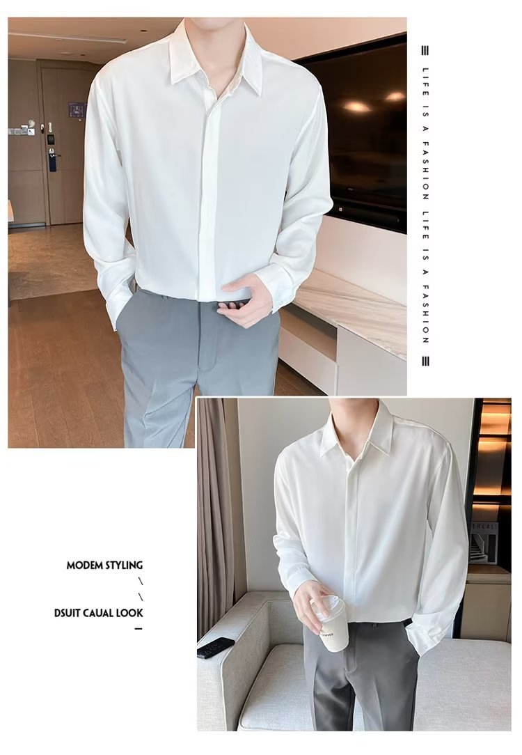 여름 빛 성숙한 고급 쉬폰 아이스 실크 우아한 셔츠 남성용 긴팔 루즈한 한국식 내부 비 철 셔츠스토어 가기