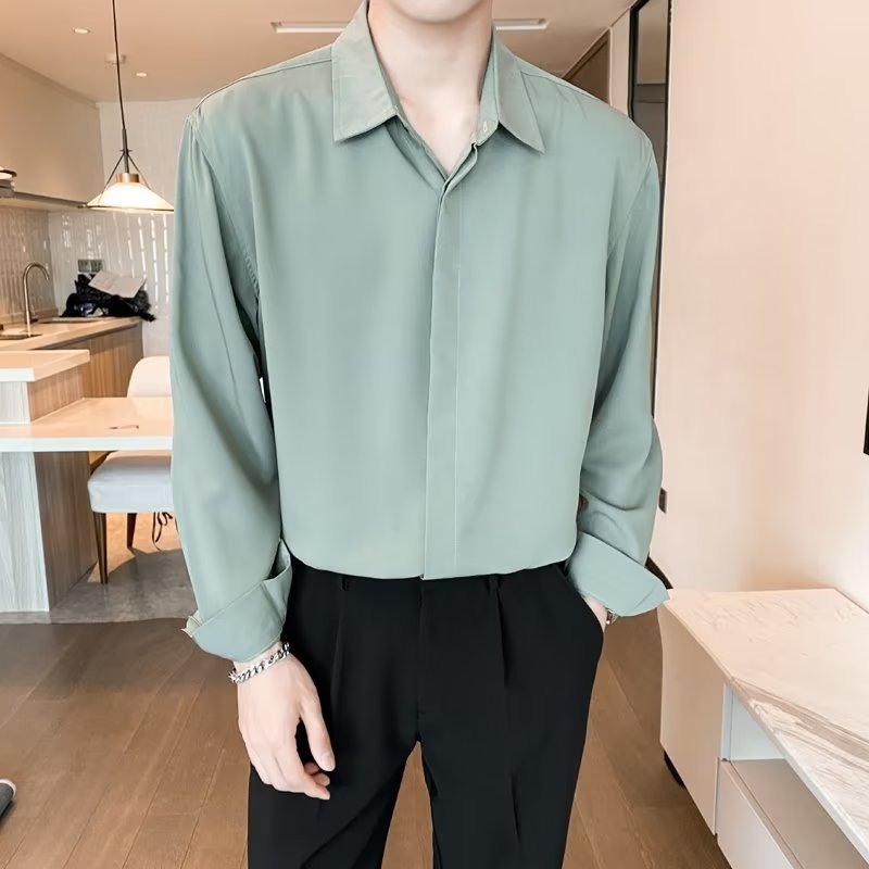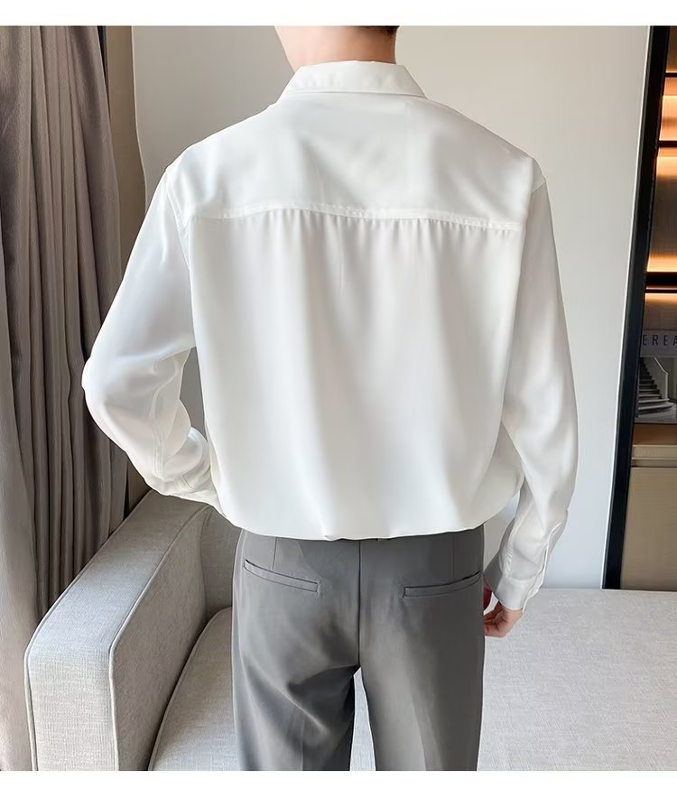 여름 빛 성숙한 고급 쉬폰 아이스 실크 우아한 셔츠 남성용 긴팔 루즈한 한국식 내부 비 철 셔츠